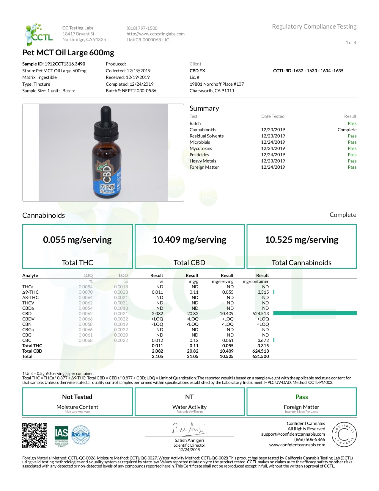 CBDfx Pet CBD Oil (Large Breed) Lab Report 600mg