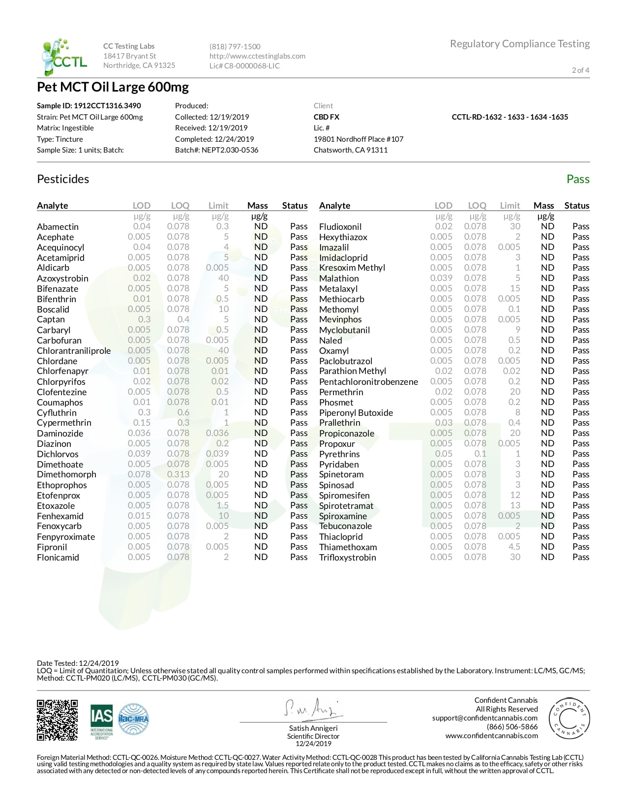 CBDfx Pet CBD Oil (Large Breed) Lab Report