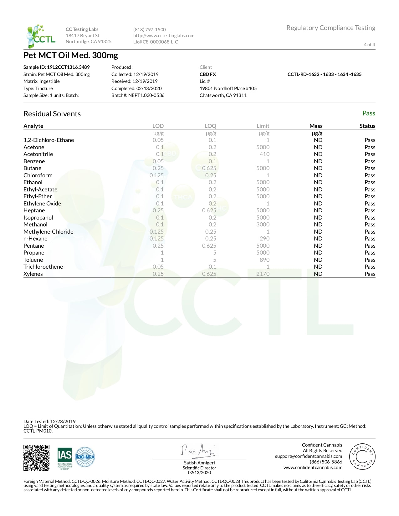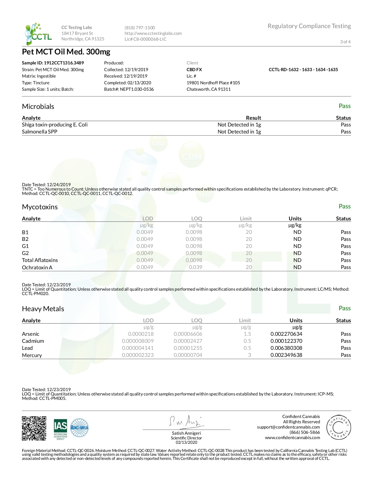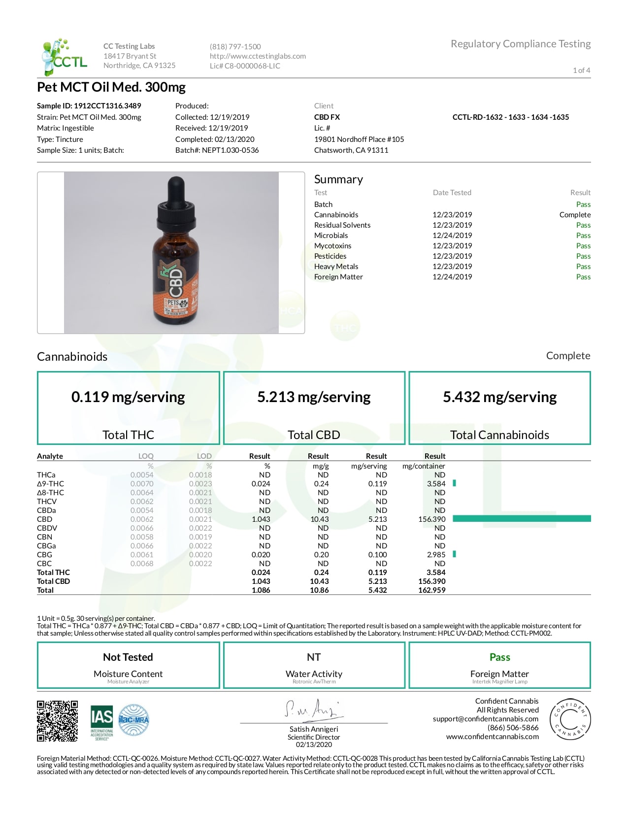 CBDfx Pet CBD Oil (Medium Breed) Lab Report
