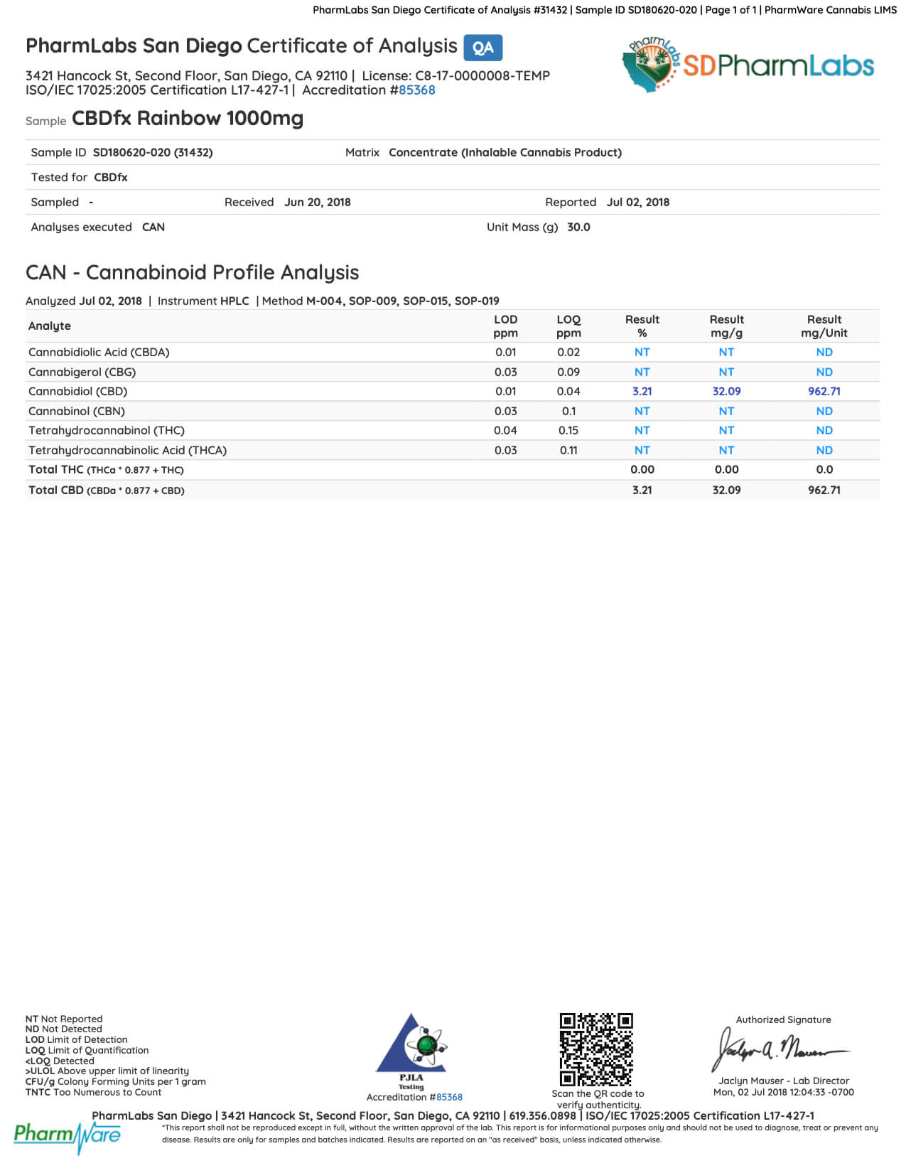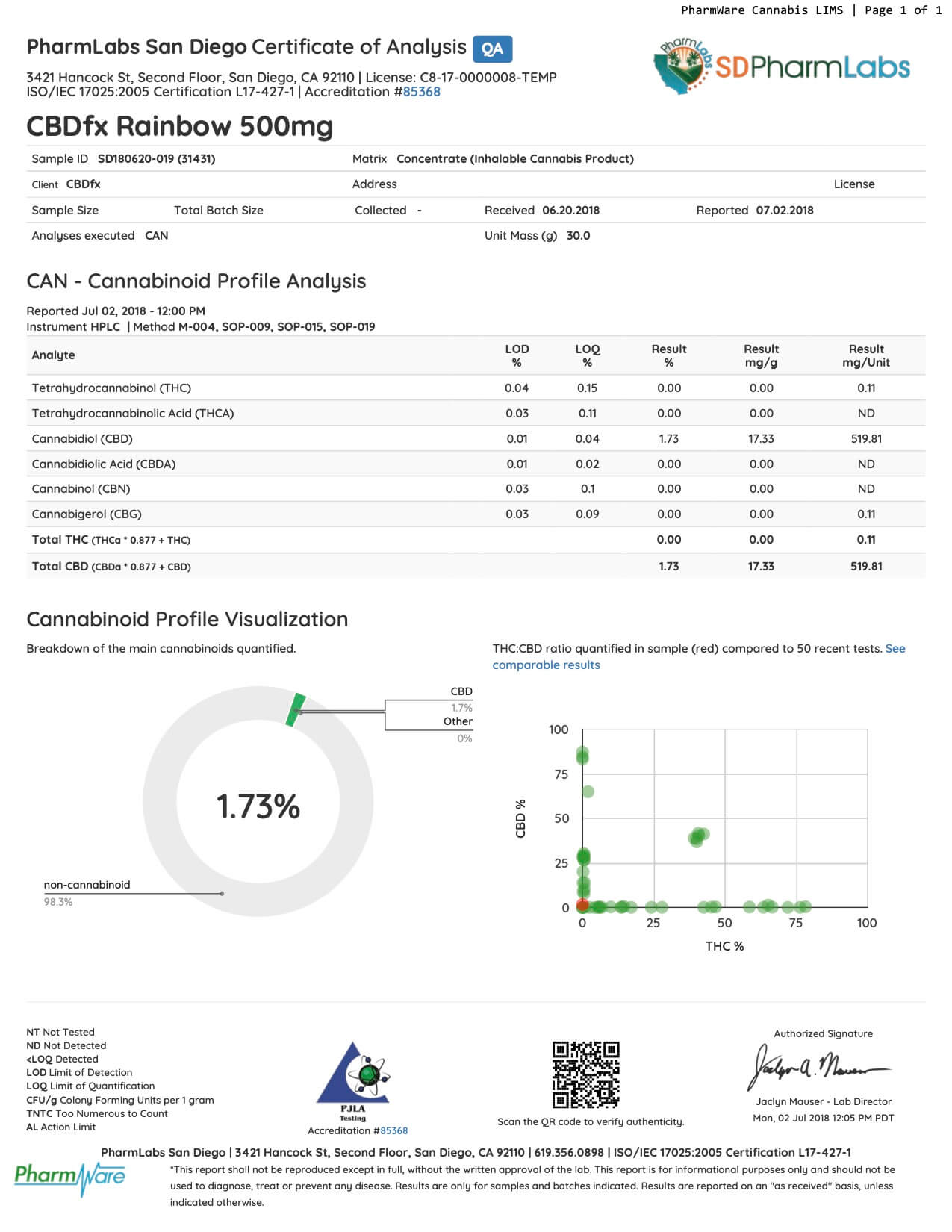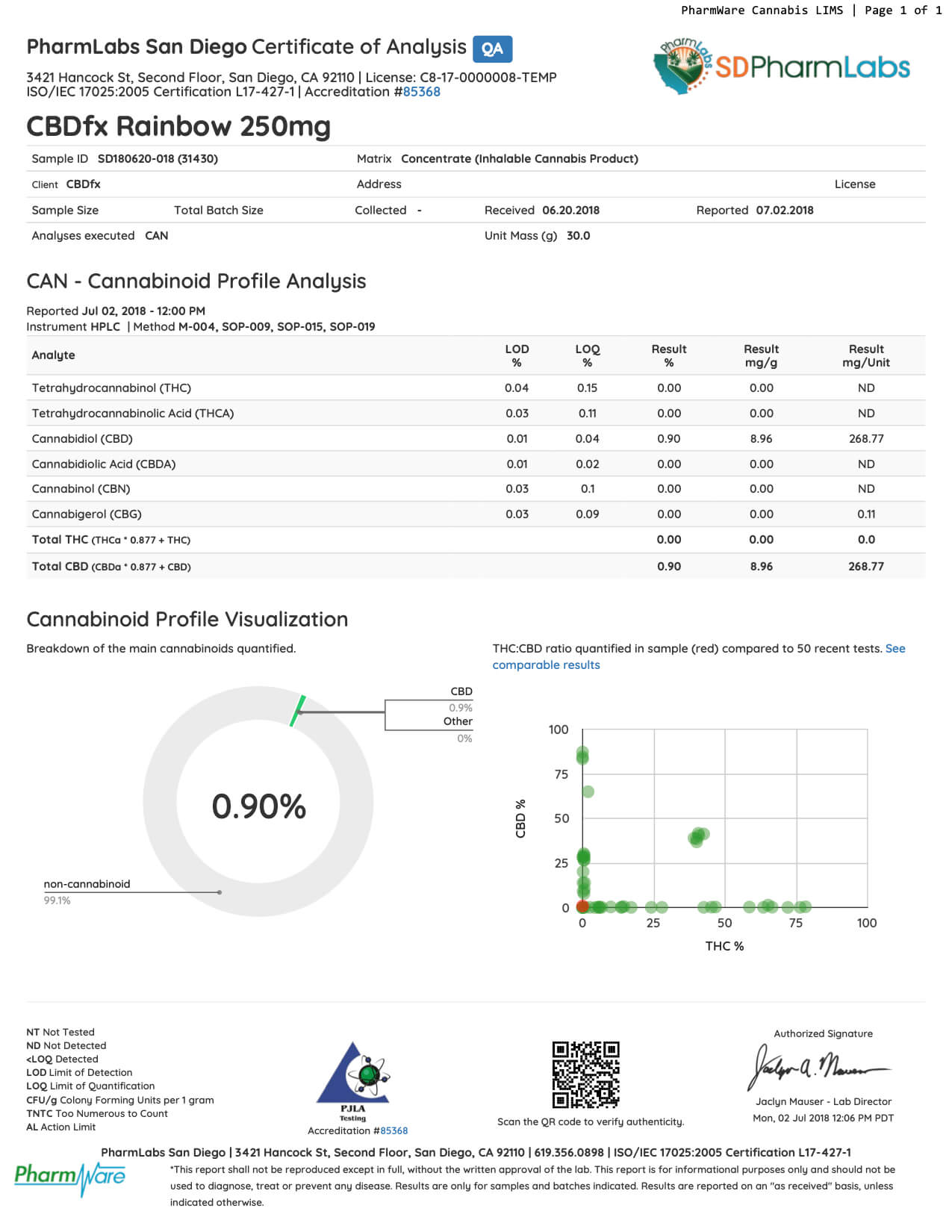 CBDfx Rainbow Candy CBD Vape Juice Lab Report
