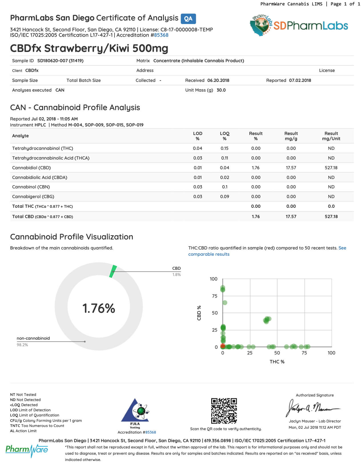 CBDfx Strawberry Kiwi CBD Vape Juice Lab Reports fair and honest results related to this vaping product.