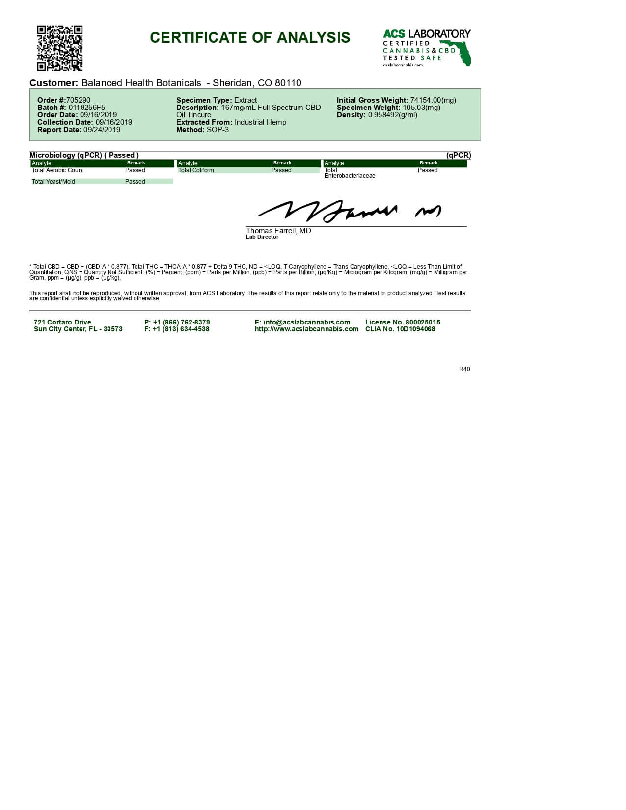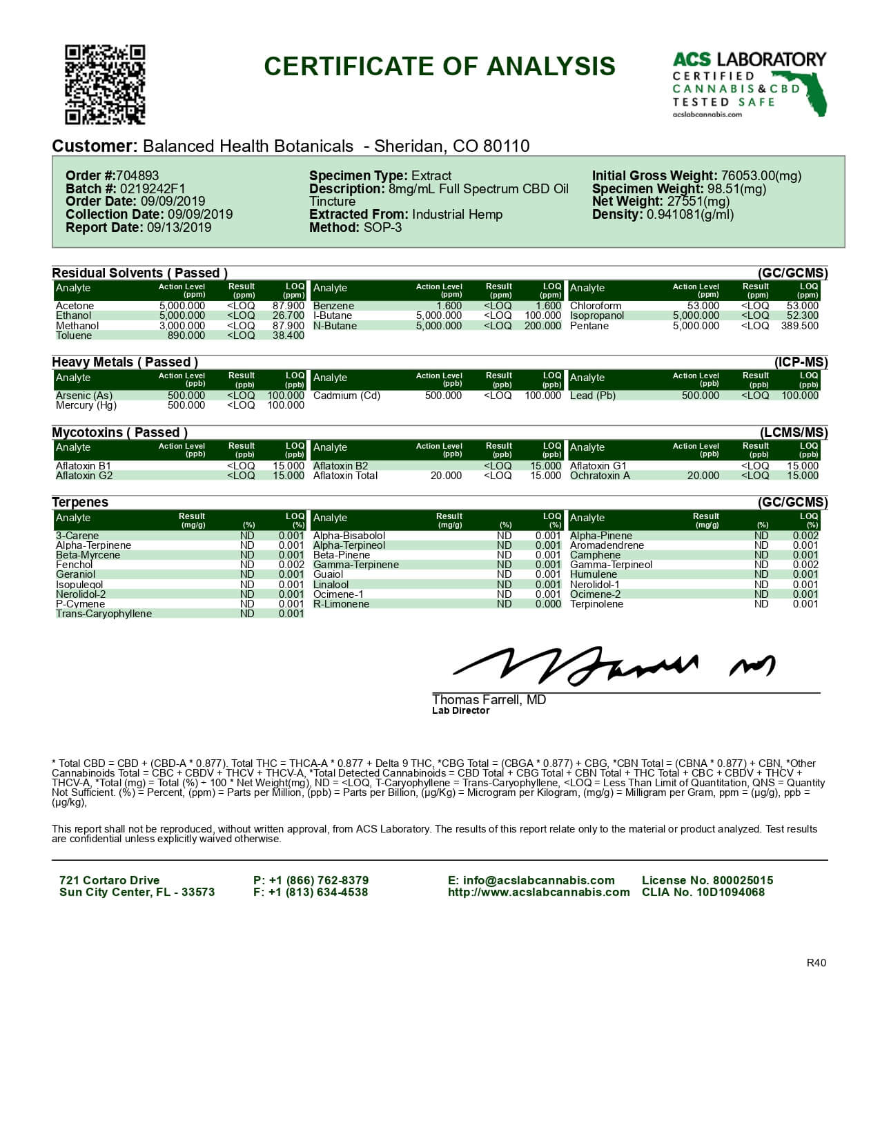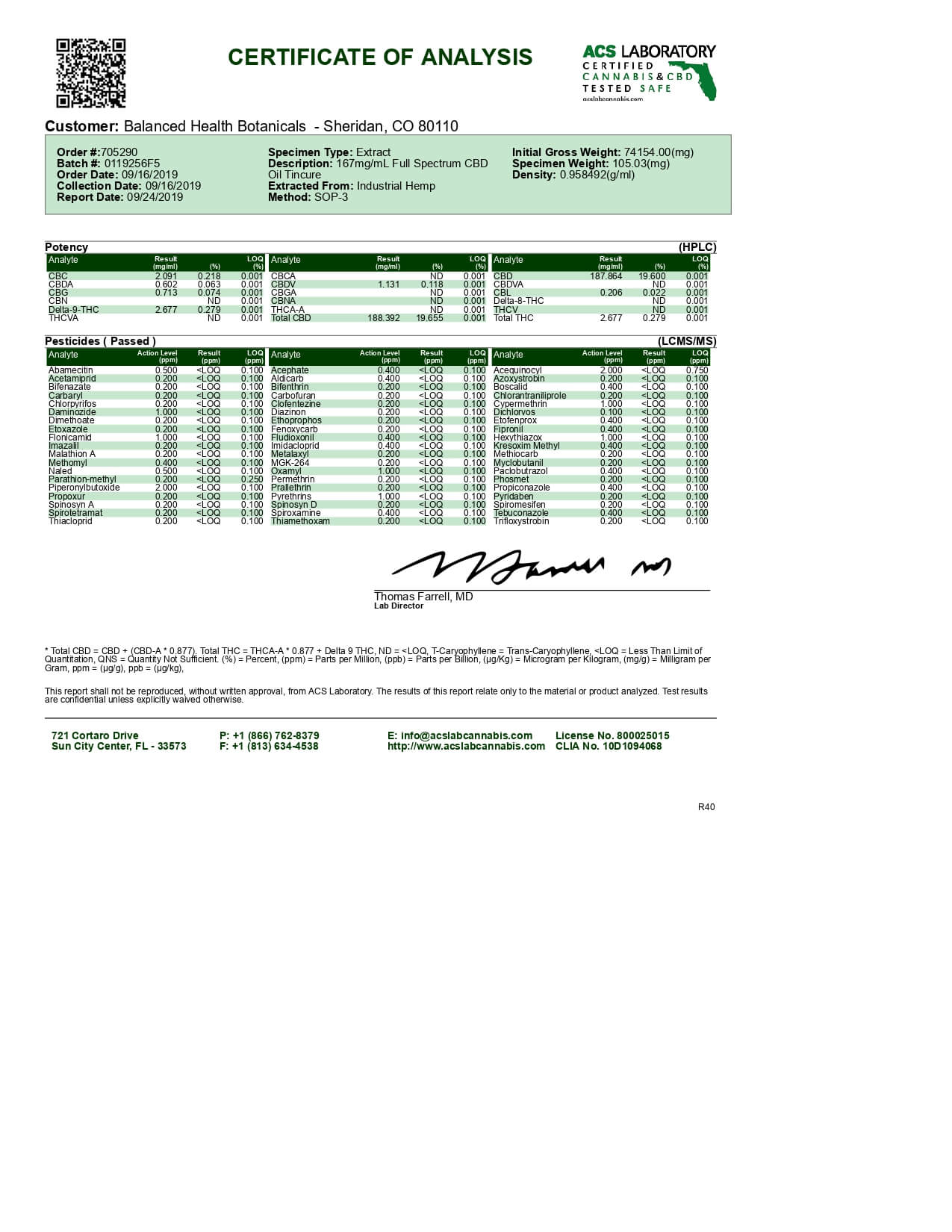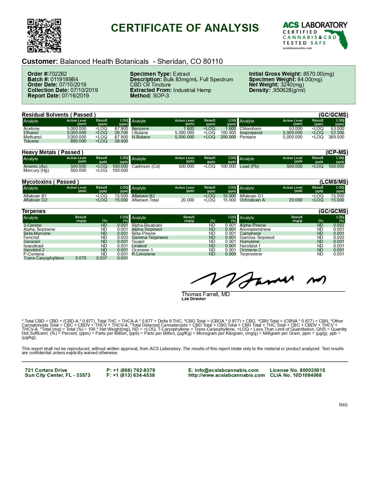 CBDistillery CBD Tincture Full Spectrum 250mg Lab Report