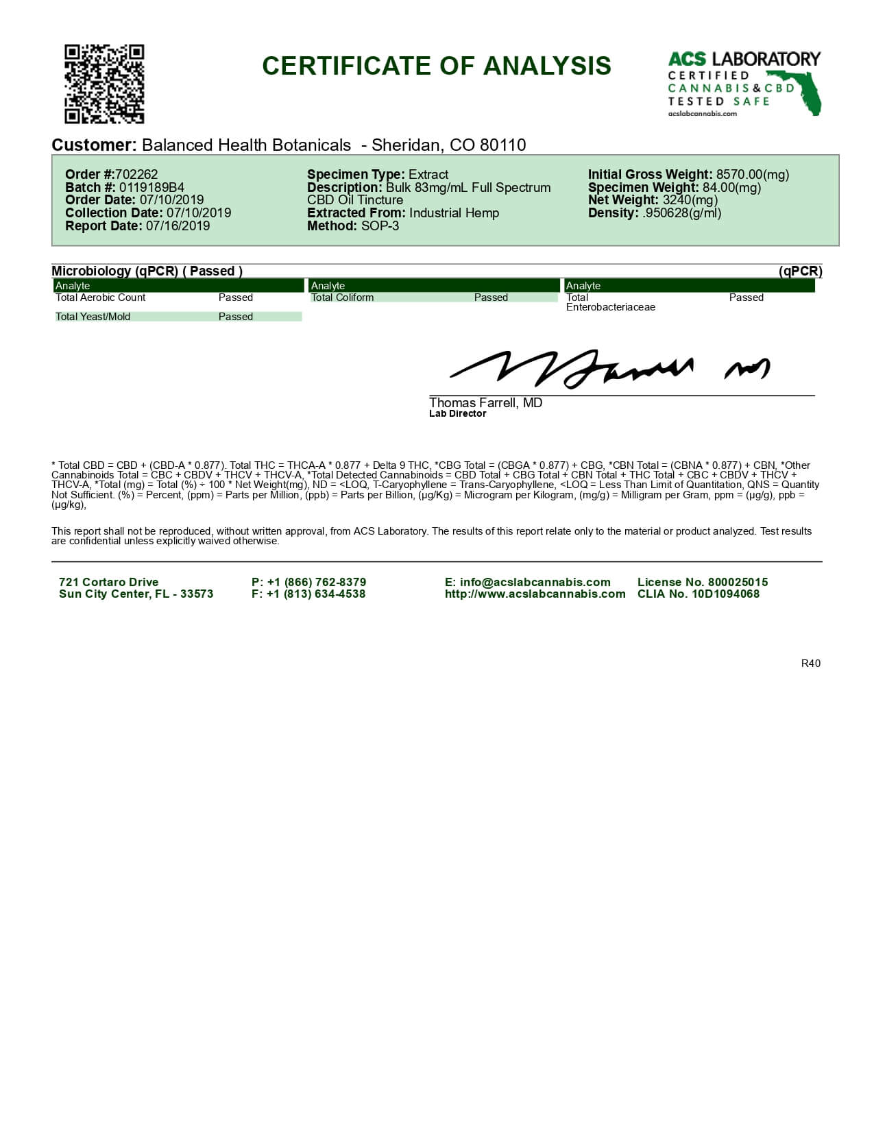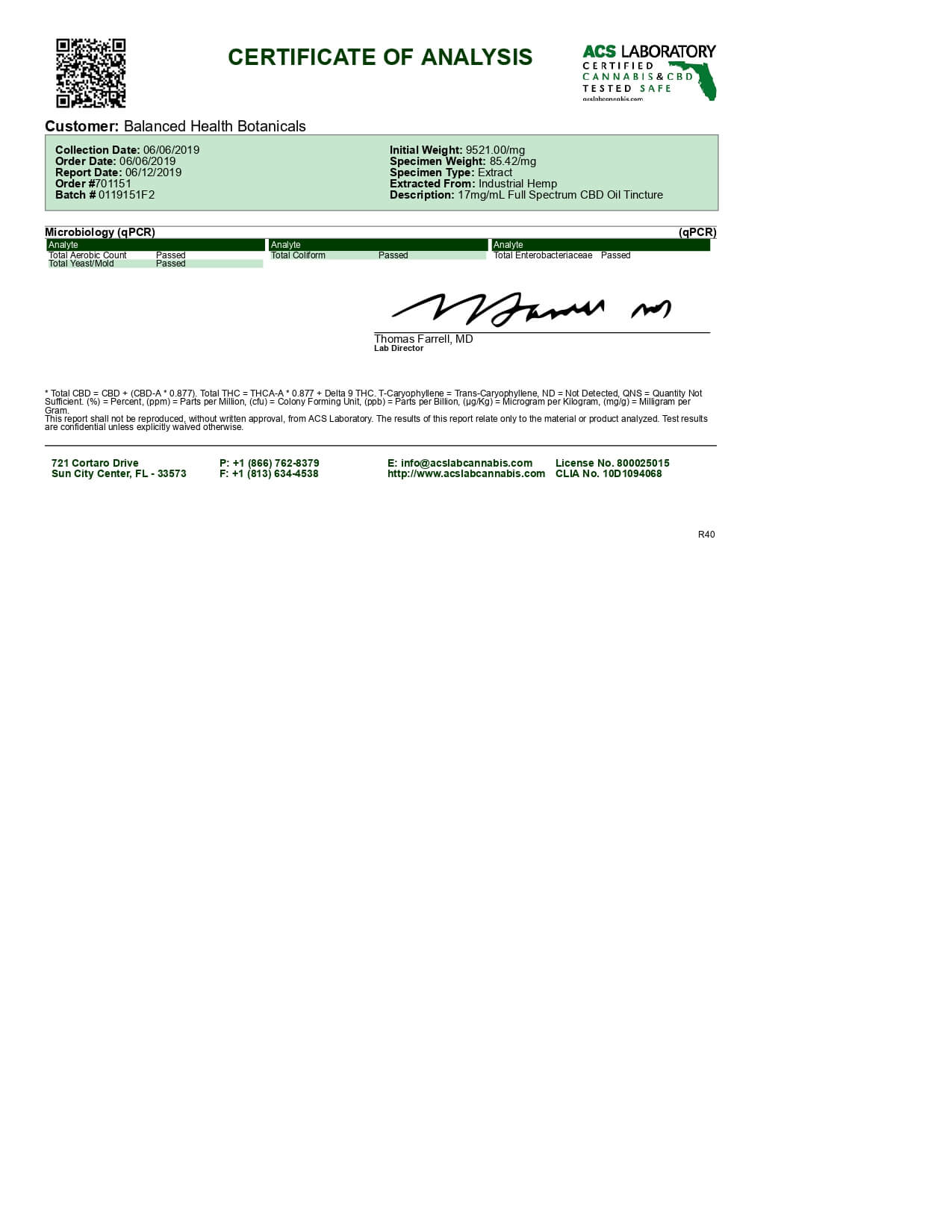 CBDistillery CBD Tincture Full Spectrum Lab Report