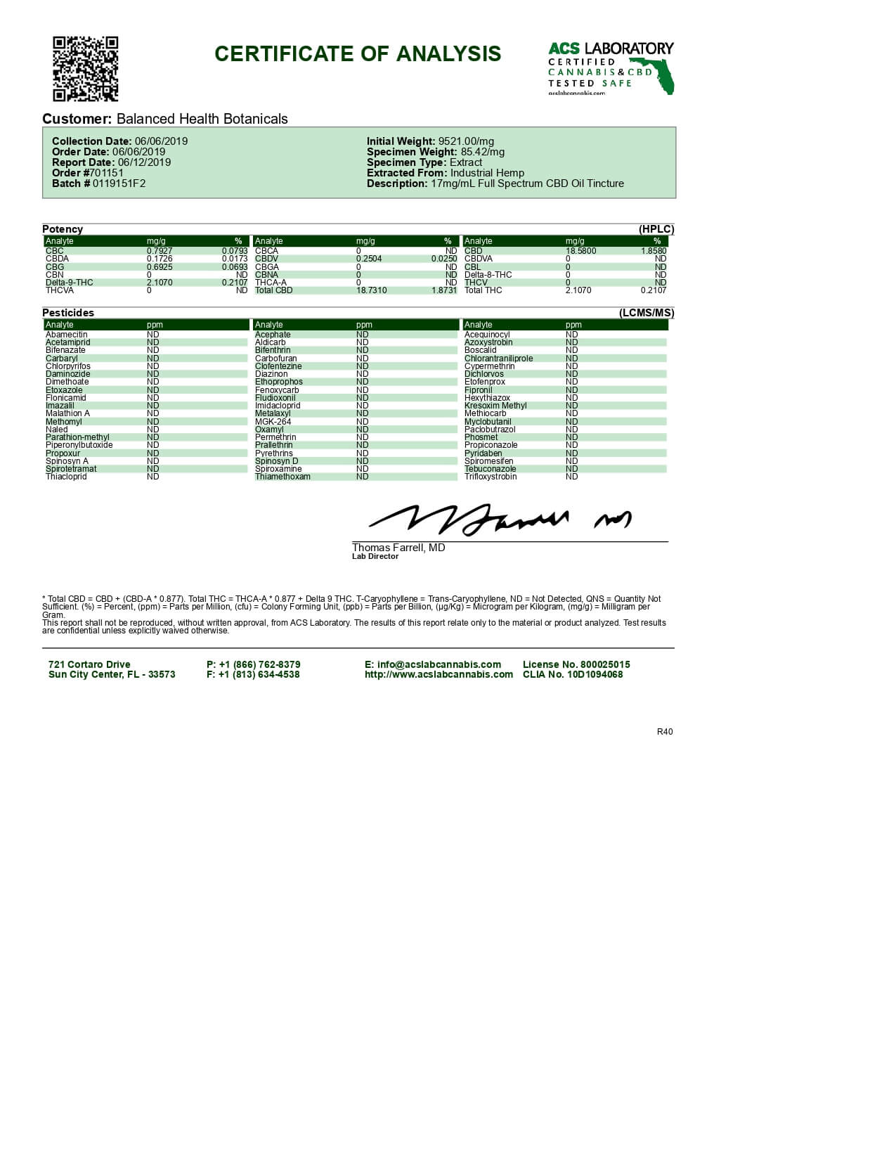 CBDistillery CBD Tincture Full Spectrum 500mg Lab Report