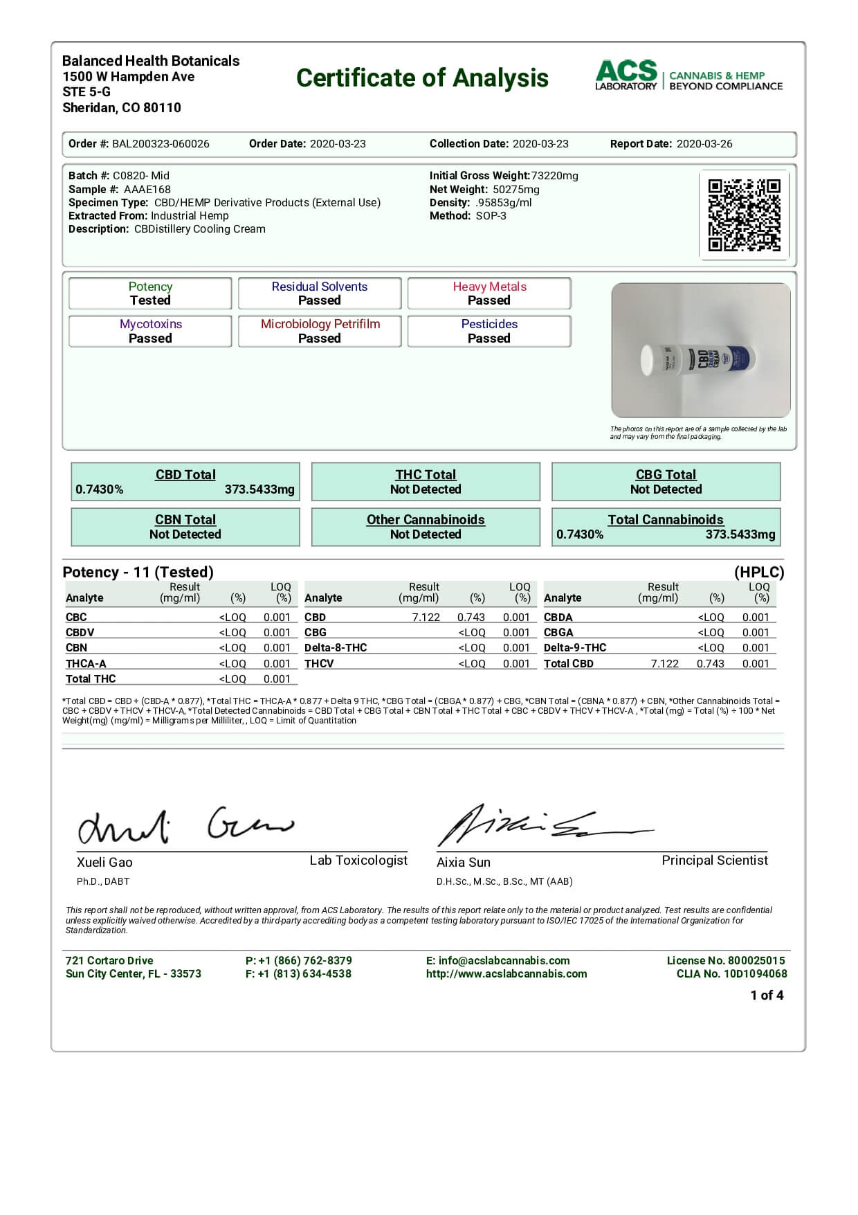 CBDistillery CBD Topical Broad Spectrum Cooling Cream Lab Report important details about vaping products.