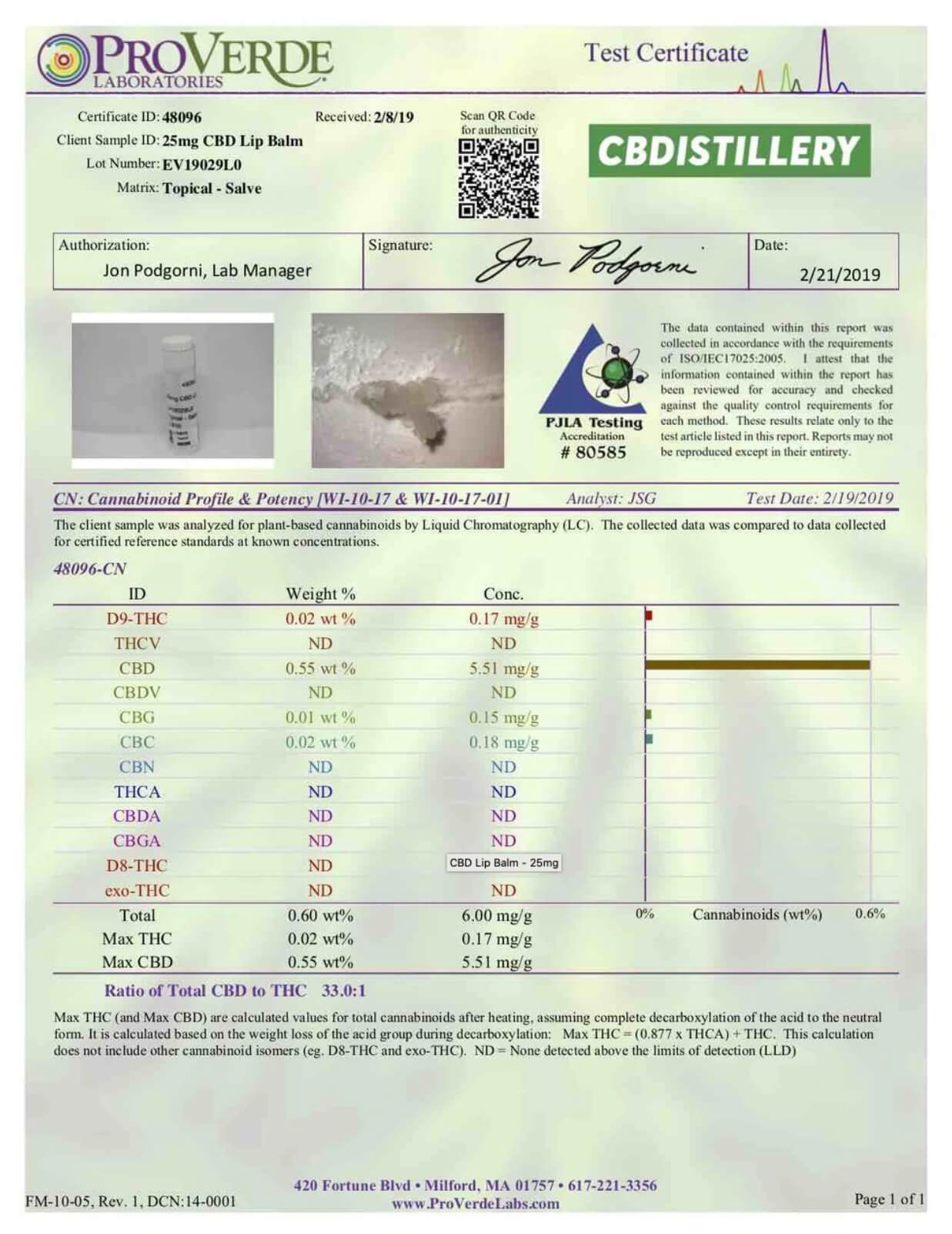 CBDistillery CBD Topical Broad Spectrum Spearmint Lip Balm Lab Report important details about vaping products.