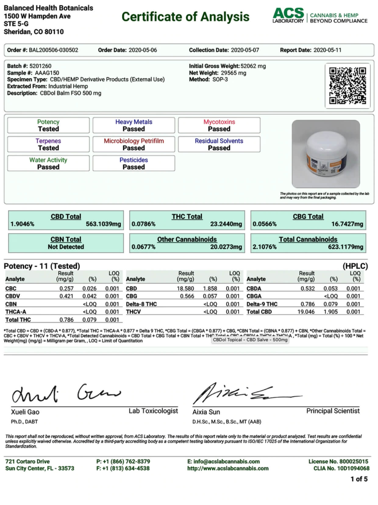 CBDistillery CBD Topical CBDol Full Spectrum Balm Lab Report important details about vaping products.