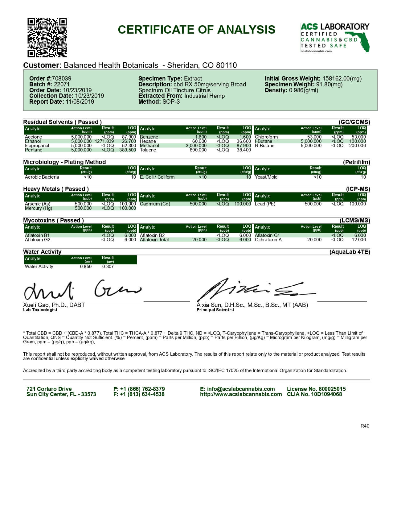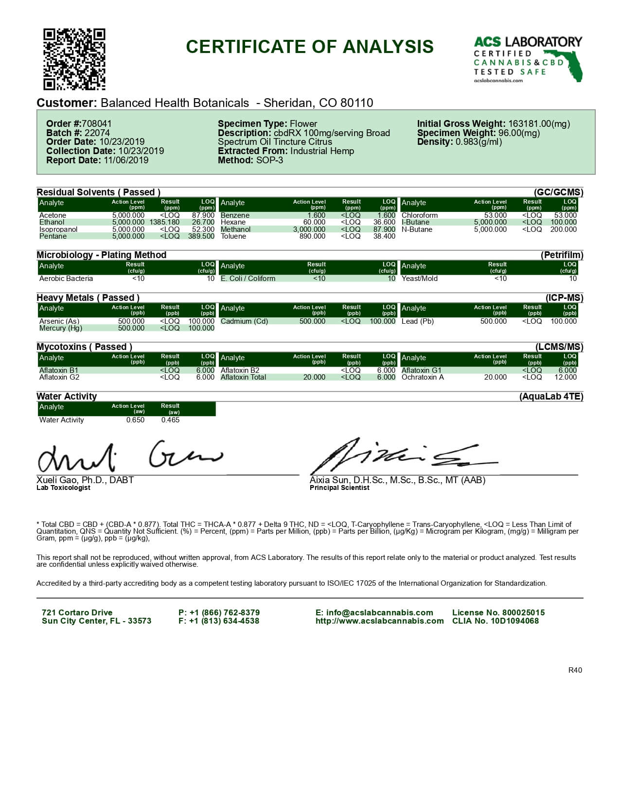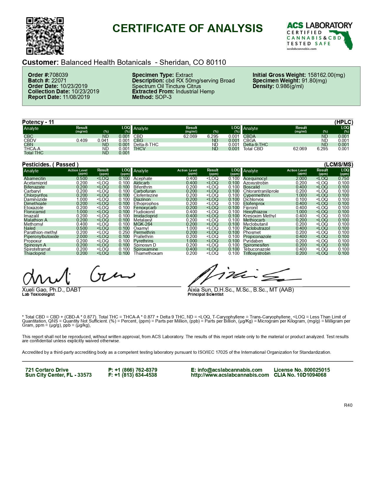 CBDistillery Rx CBD Tincture Broad Spectrum Citrus Lab Report important details about vaping products.