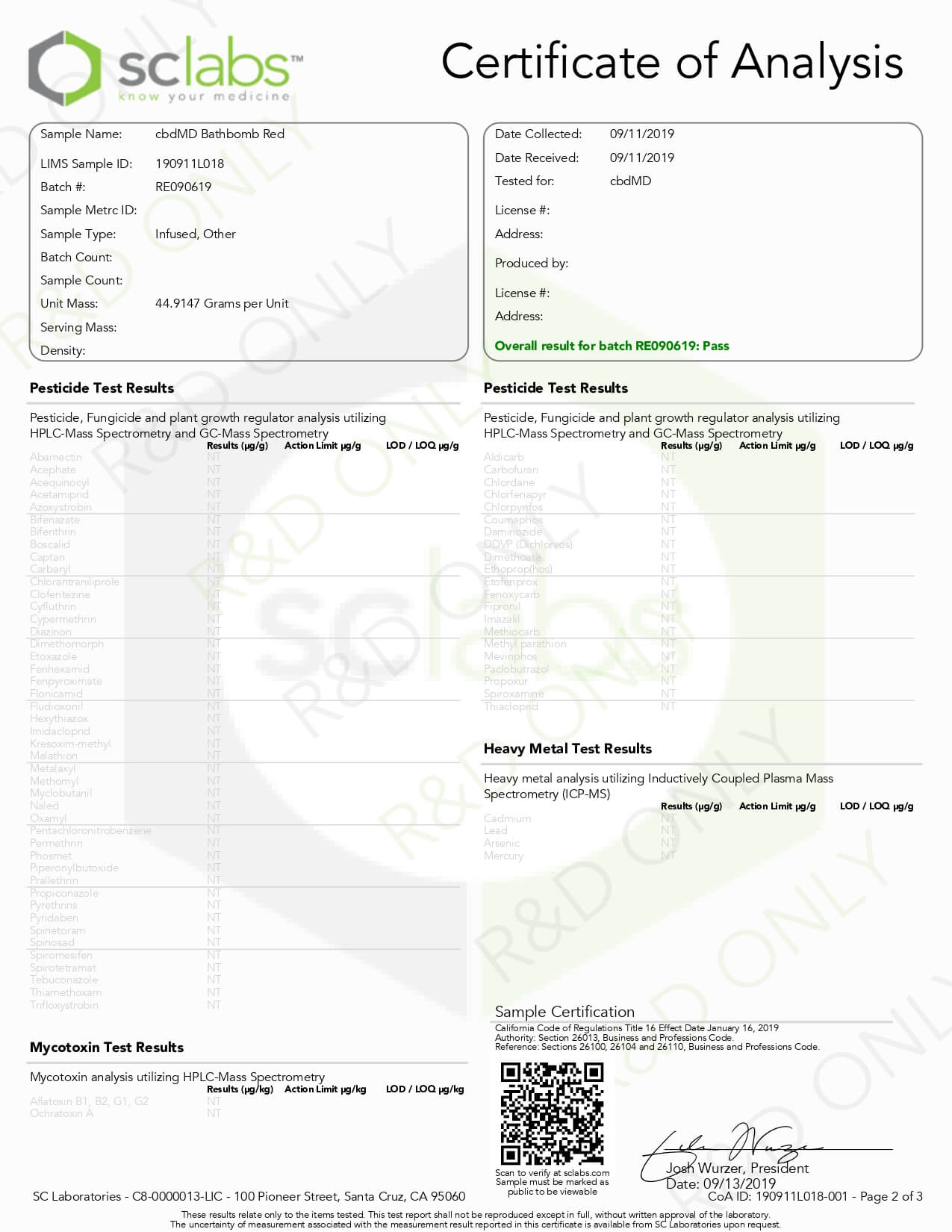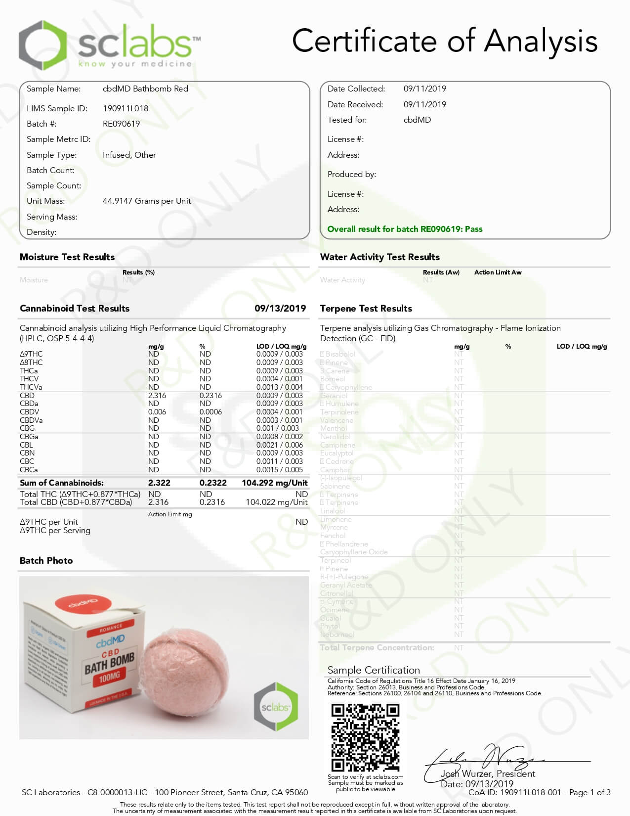 cbdMD CBD Bath Romace Bath Bomb Lab Report