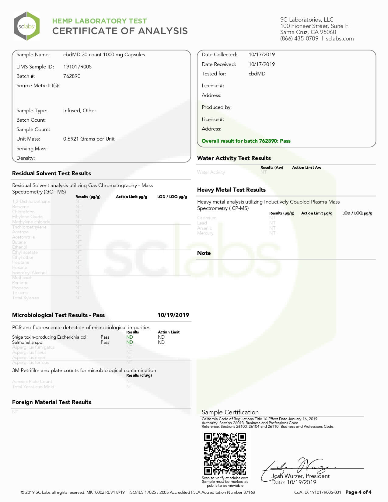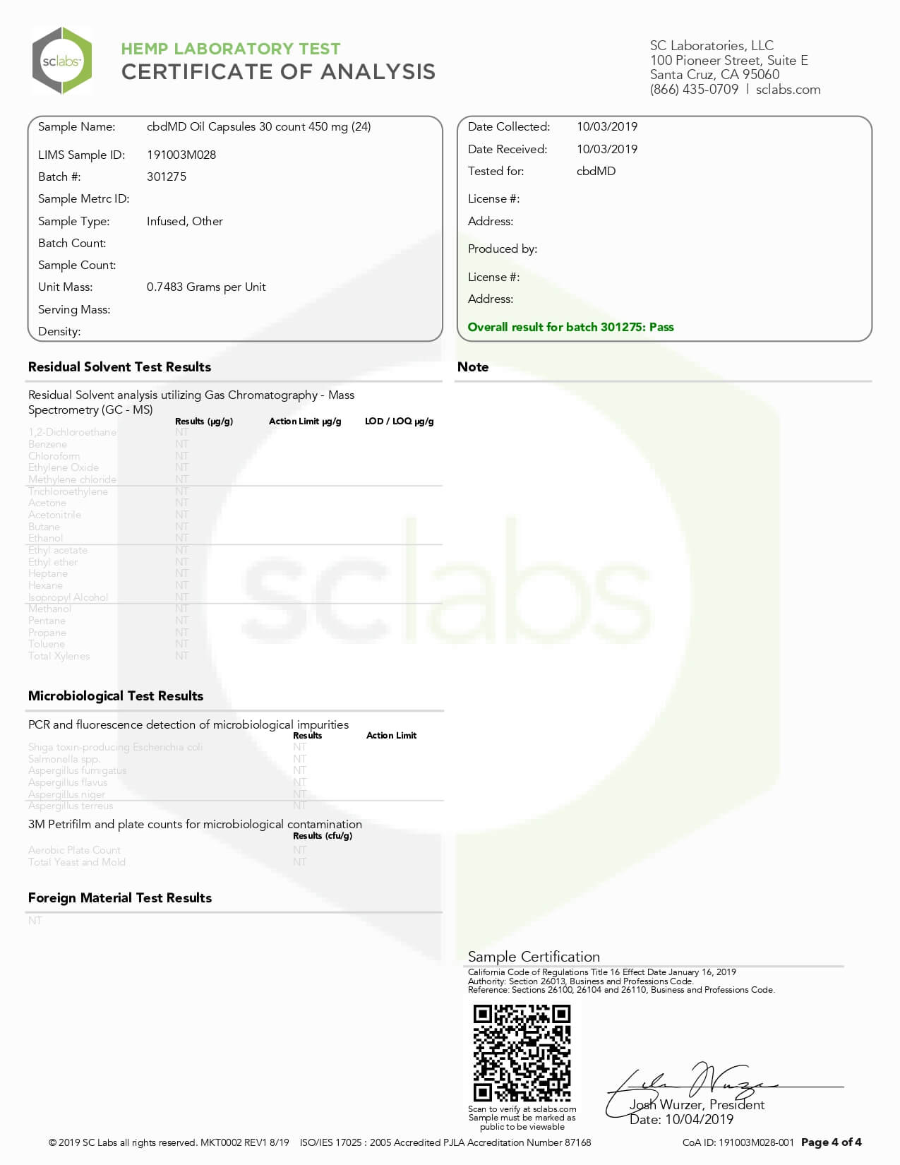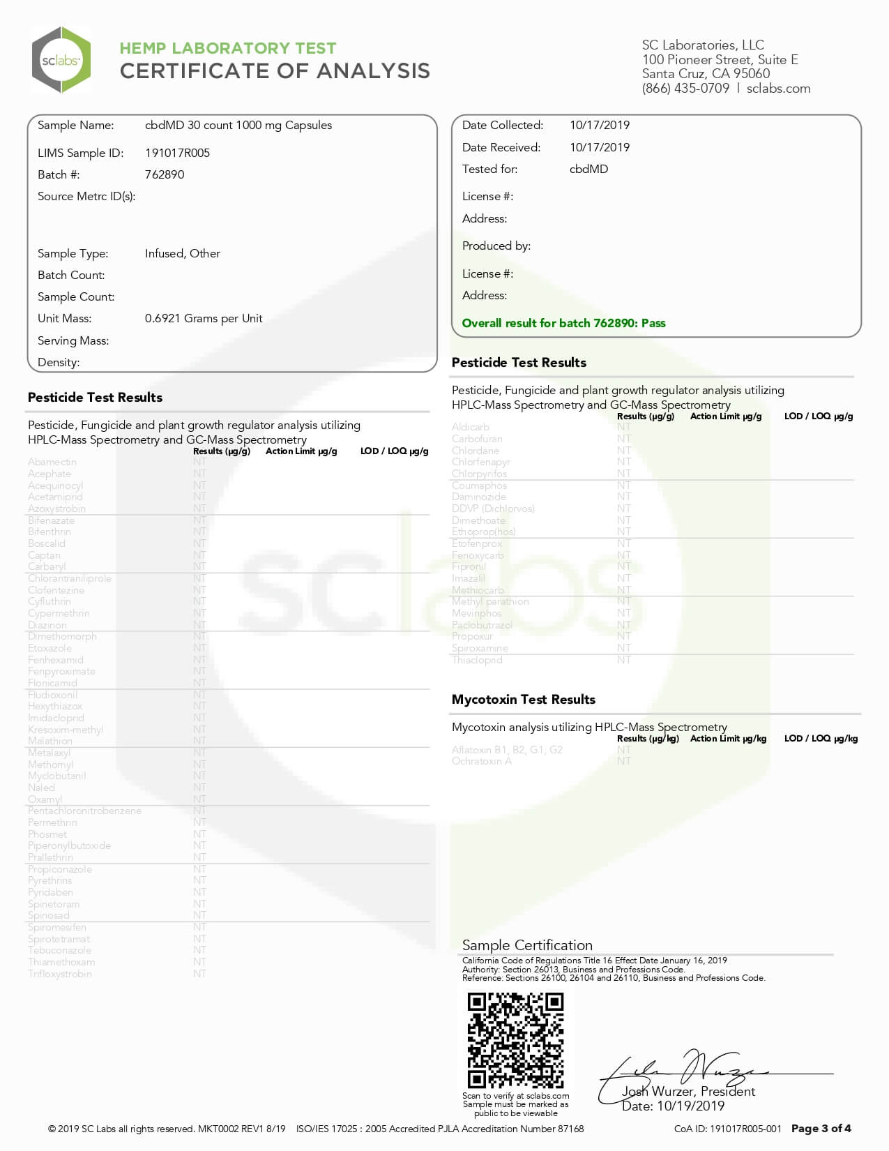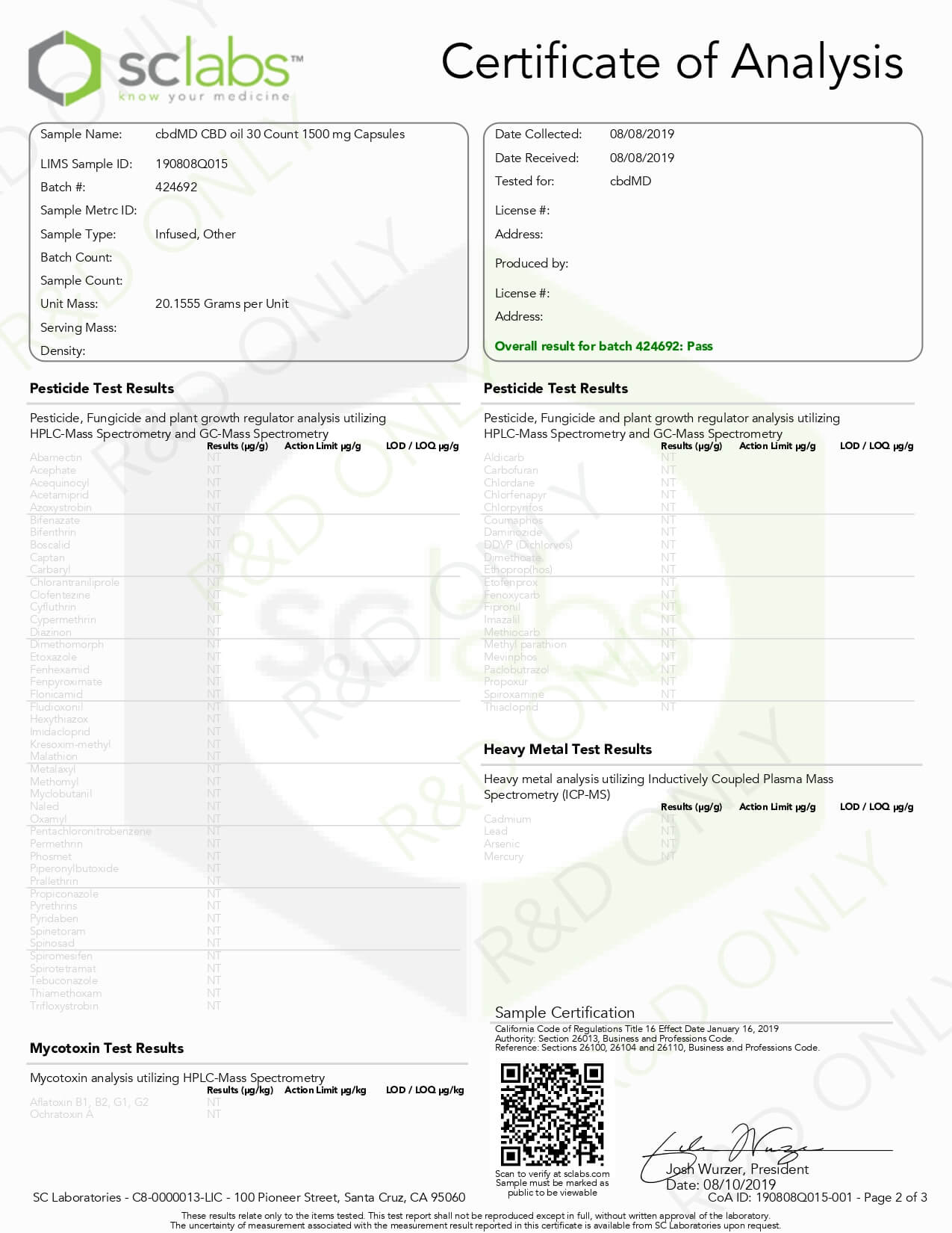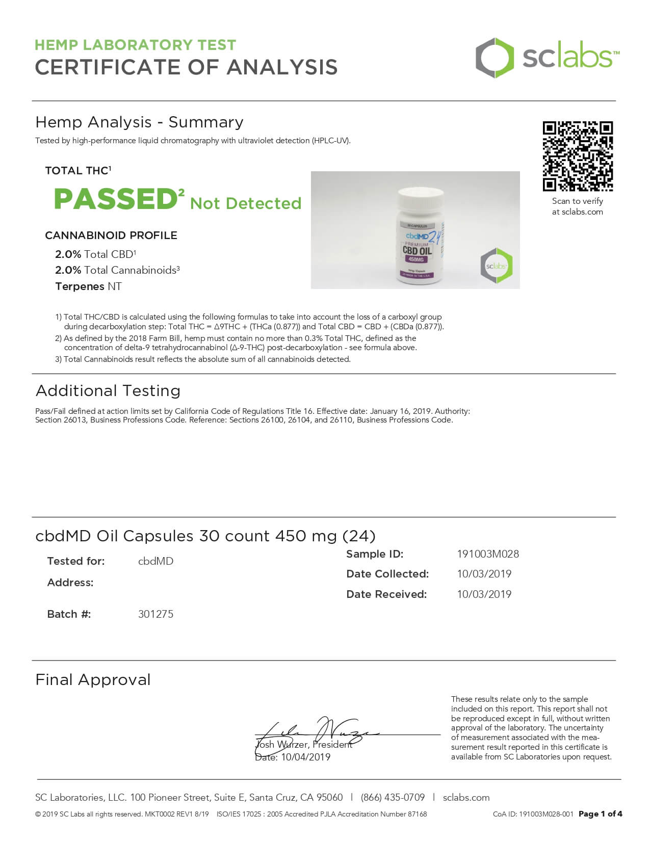 cbdMD CBD Capsules Broad Spectrum Capsules 60ct 3000mgLab Report