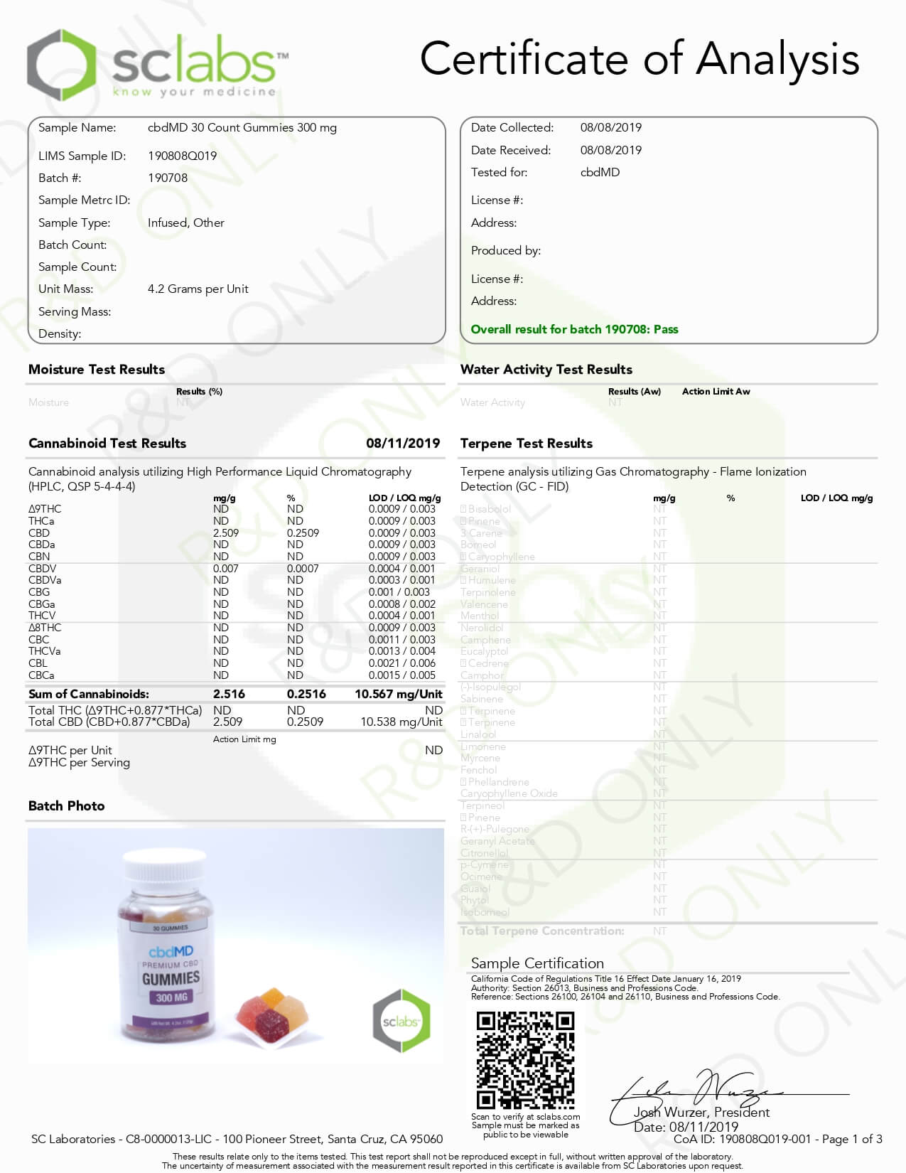 cbdMD CBD Edible Broad Spectrum Gummies Lab Report