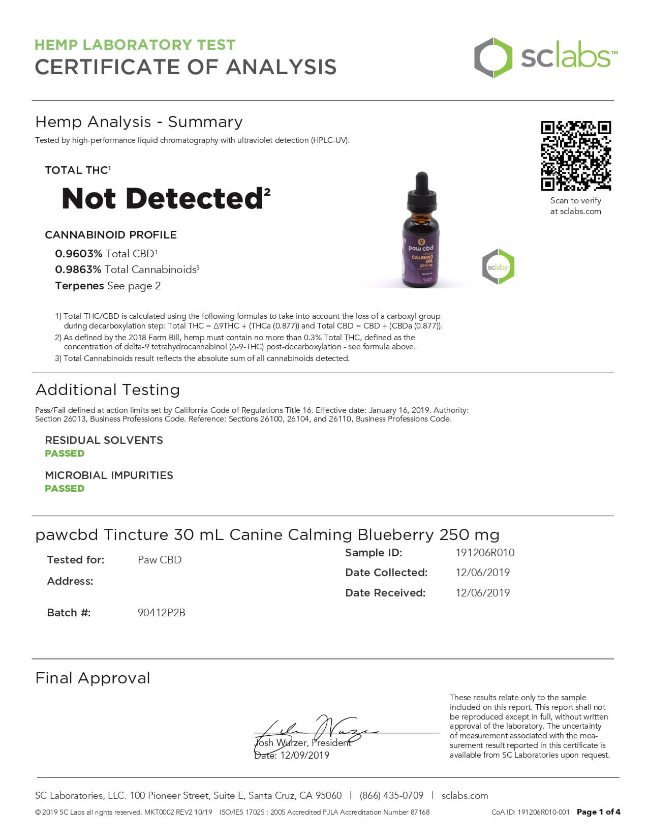 cbdMD CBD Pet Tincture Blueberry Calming Oil for Canines Lab Report important details about vaping products.