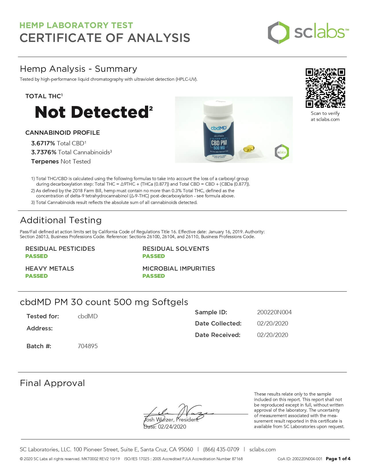 cbdMD CBD Softgels PM Softgel Capsules Lab Report