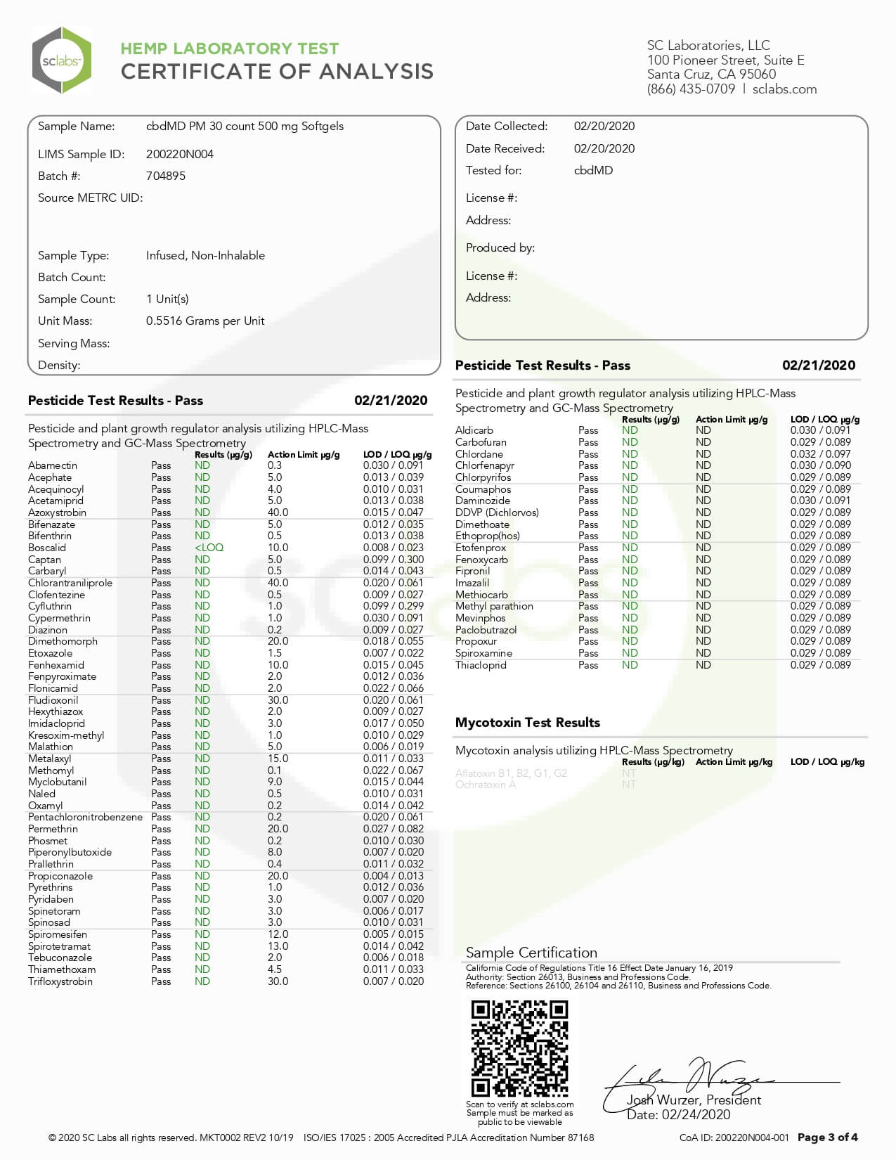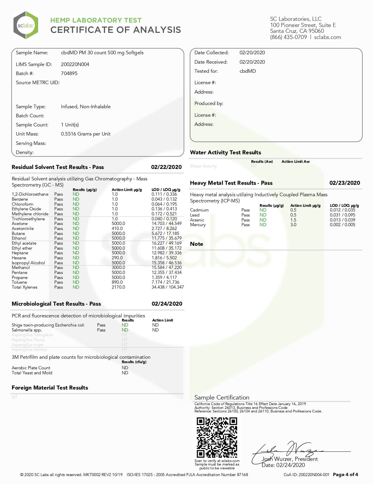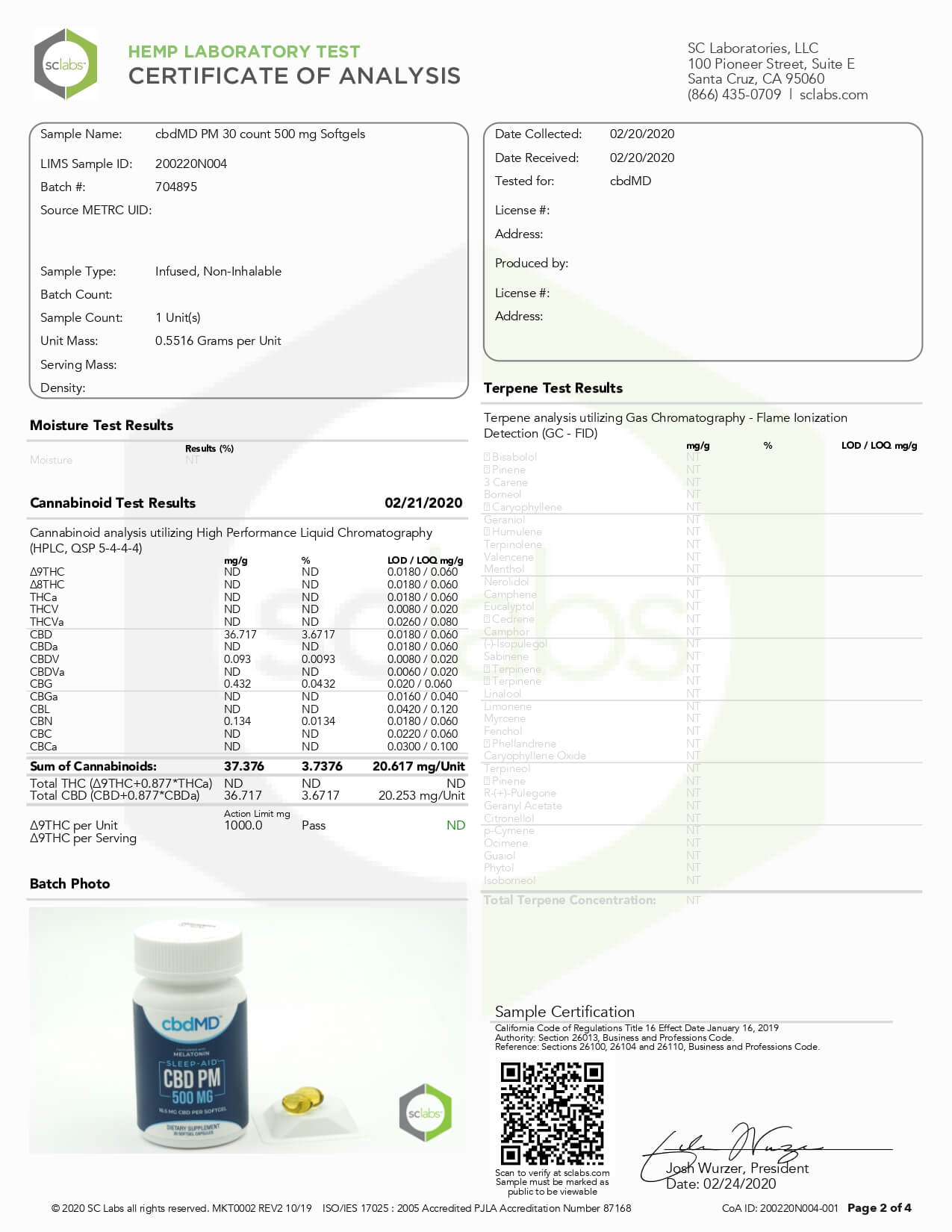 cbdMD CBD Softgels PM Softgel Capsules 500mg Lab Report