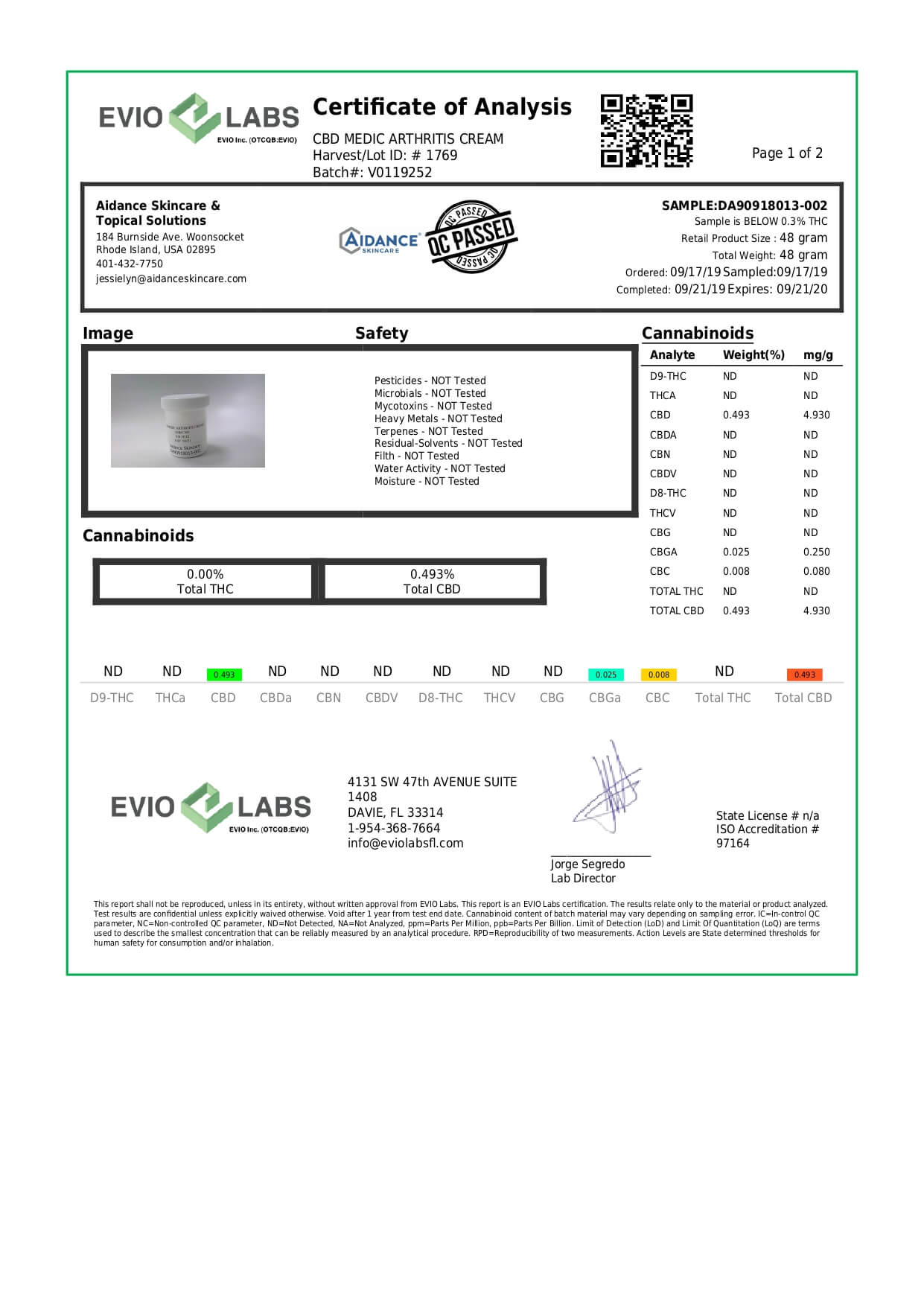 CBDMEDIC CBD Topical Arthritis Aches & Pain Relief Cream Lab Report important details about vaping products.