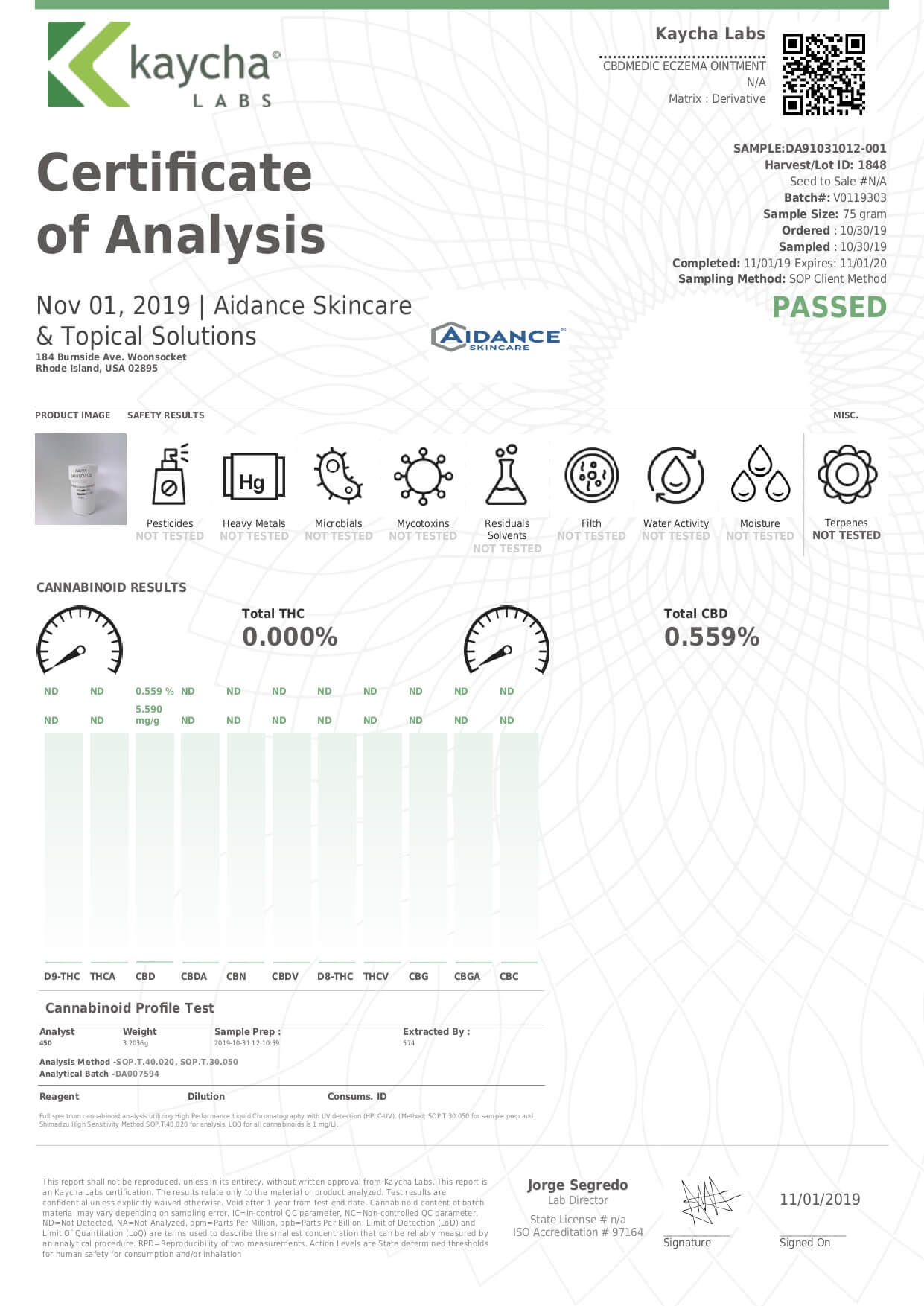CBDMEDIC CBD Topical Eczema Therapy Medicated Ointment Lab Report