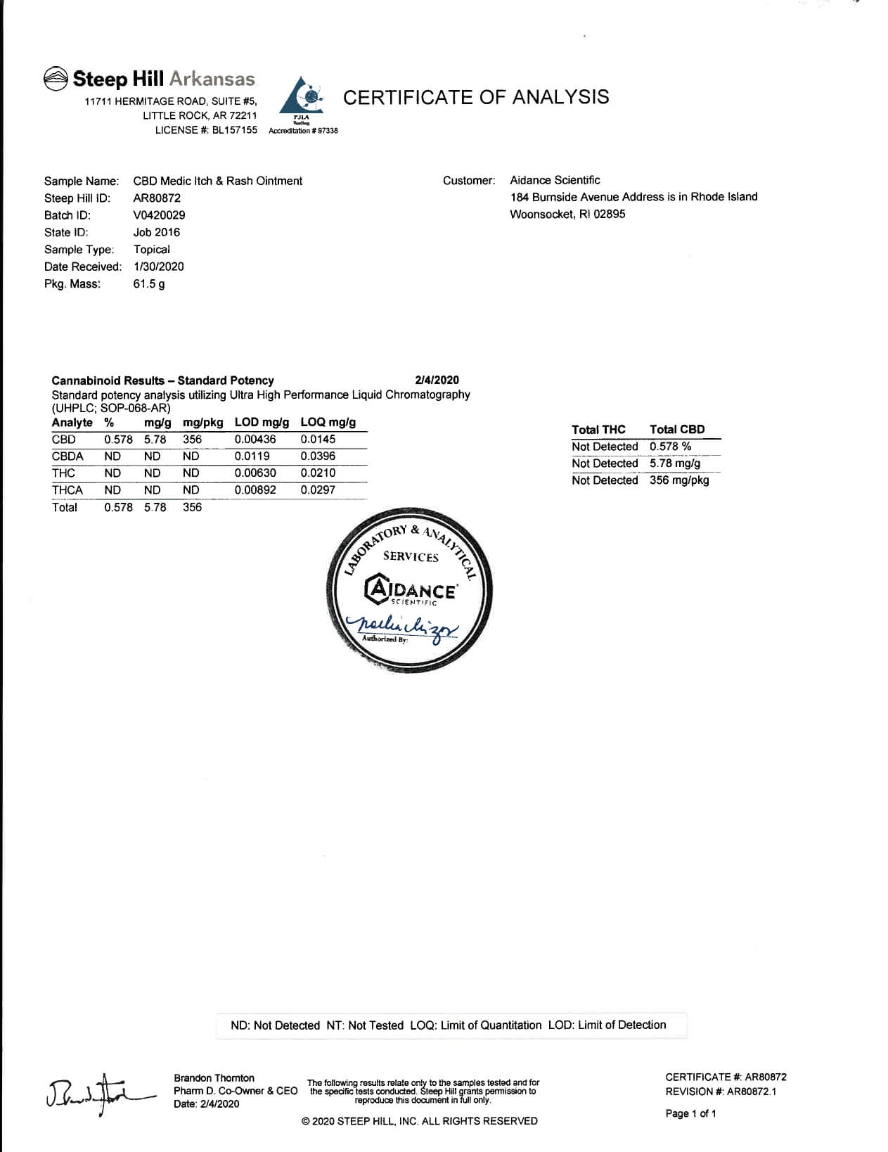 CBDMEDIC CBD Topical Itch, Rash & Pain Medicated Ointment Lab Report important details about vaping products.