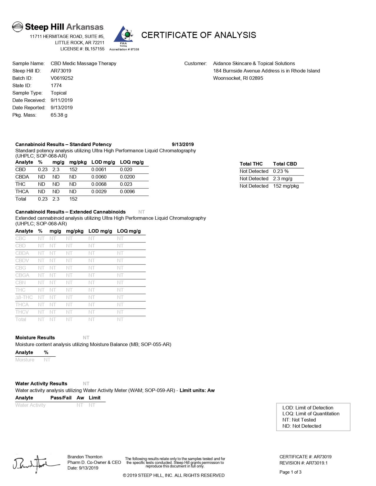 CBDMEDIC CBD Topical Massage Therapy Pain Relief Oil Lab Report important details about vaping products.