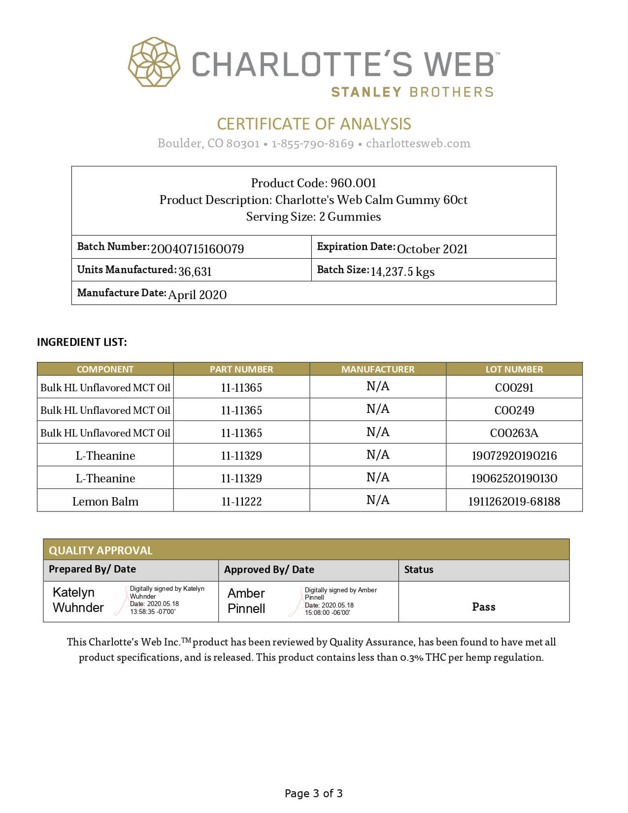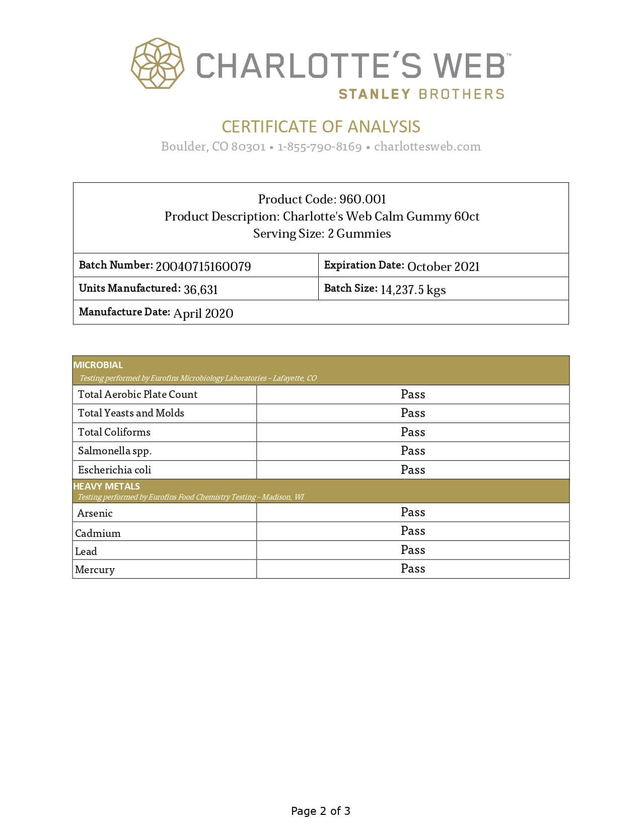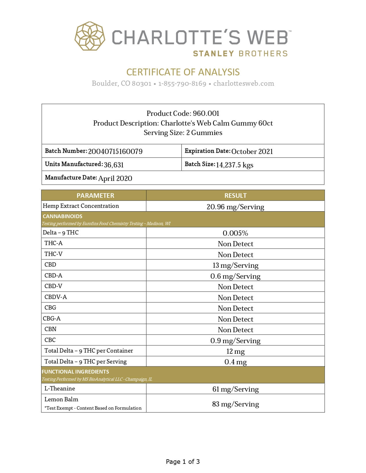 Charlottes Web Calm Hemp Extract Gummies Lab Report