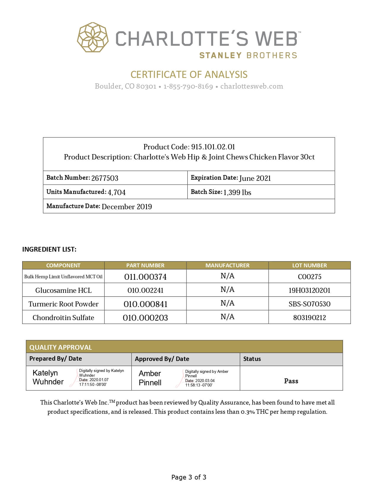 Charlottes Web CBD Pet Edible Full Spectrum Hip & Joint Chews Lab Report important details about vaping products.