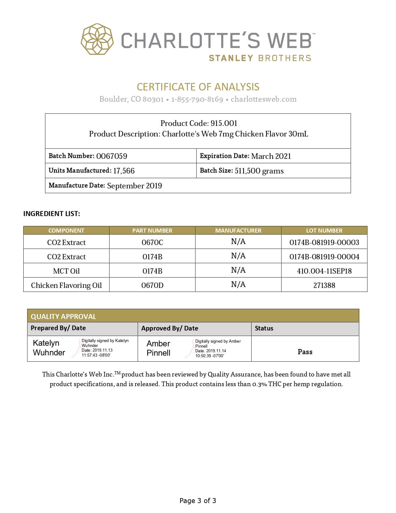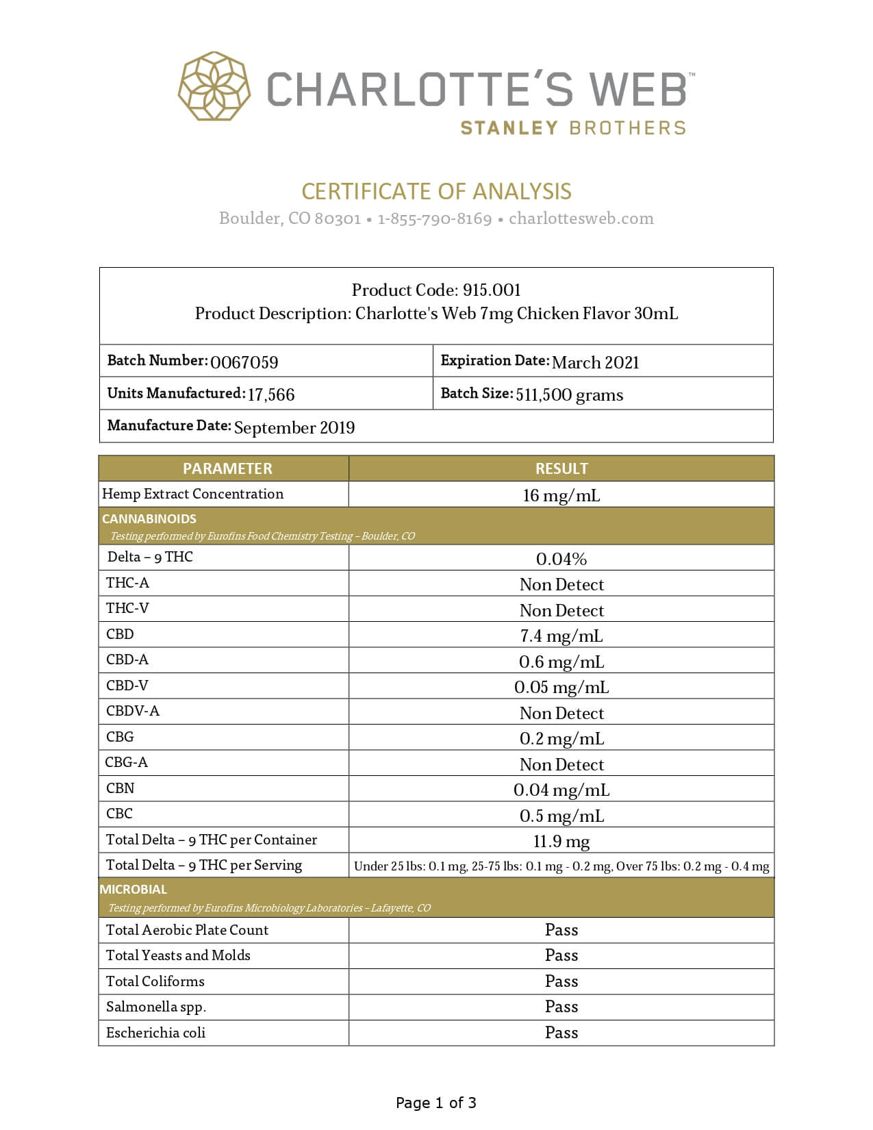 Charlottes Web CBD Pet Tincture Full Spectrum Calming Drops Lab Report important details about vaping products.