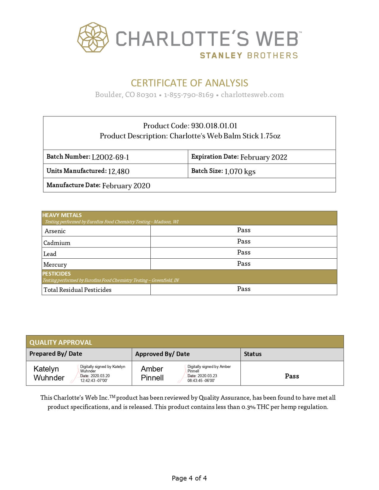 Charlottes Web CBD Topical Full Spectrum Balm Stick Lab Report important details about vaping products.