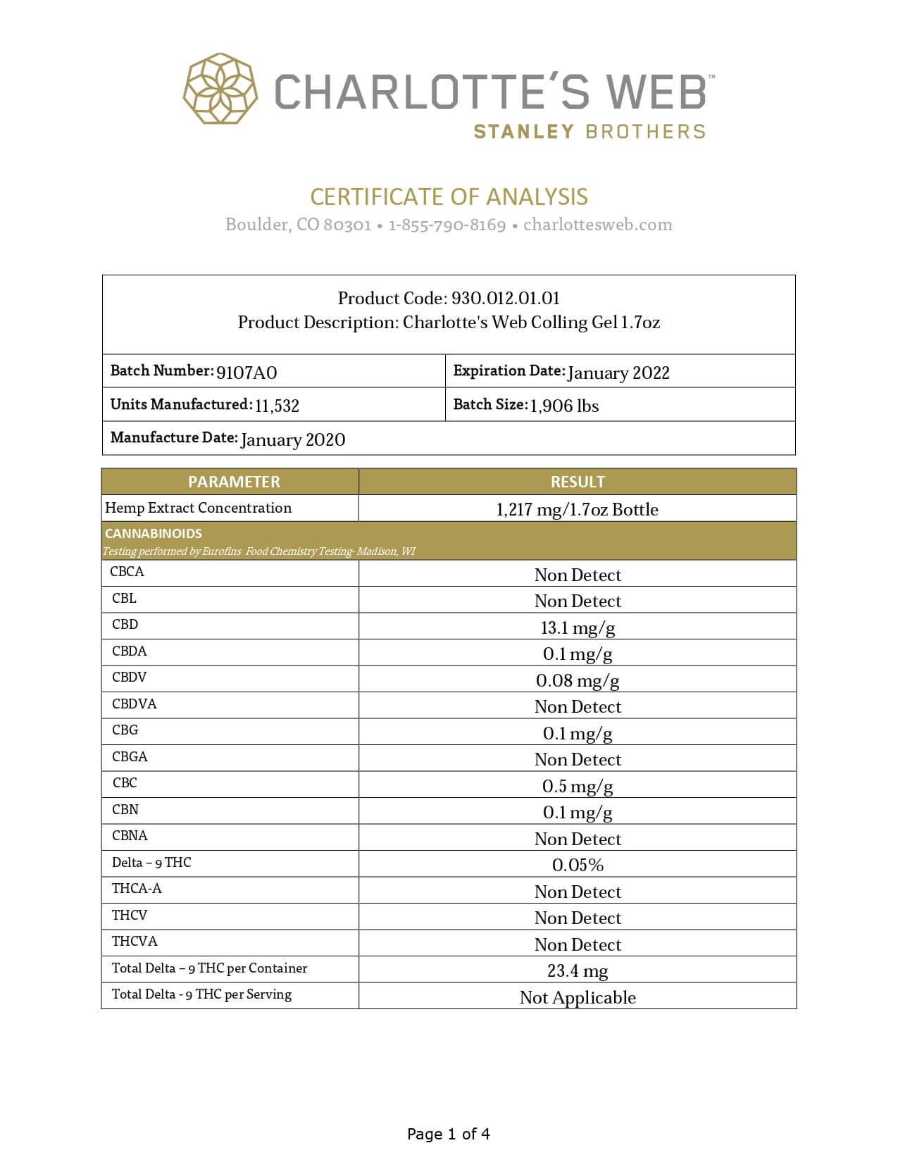 Charlottes Web Full Spectrum Cooling Gel Lab Report