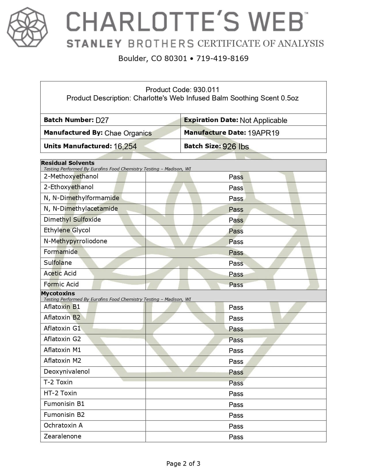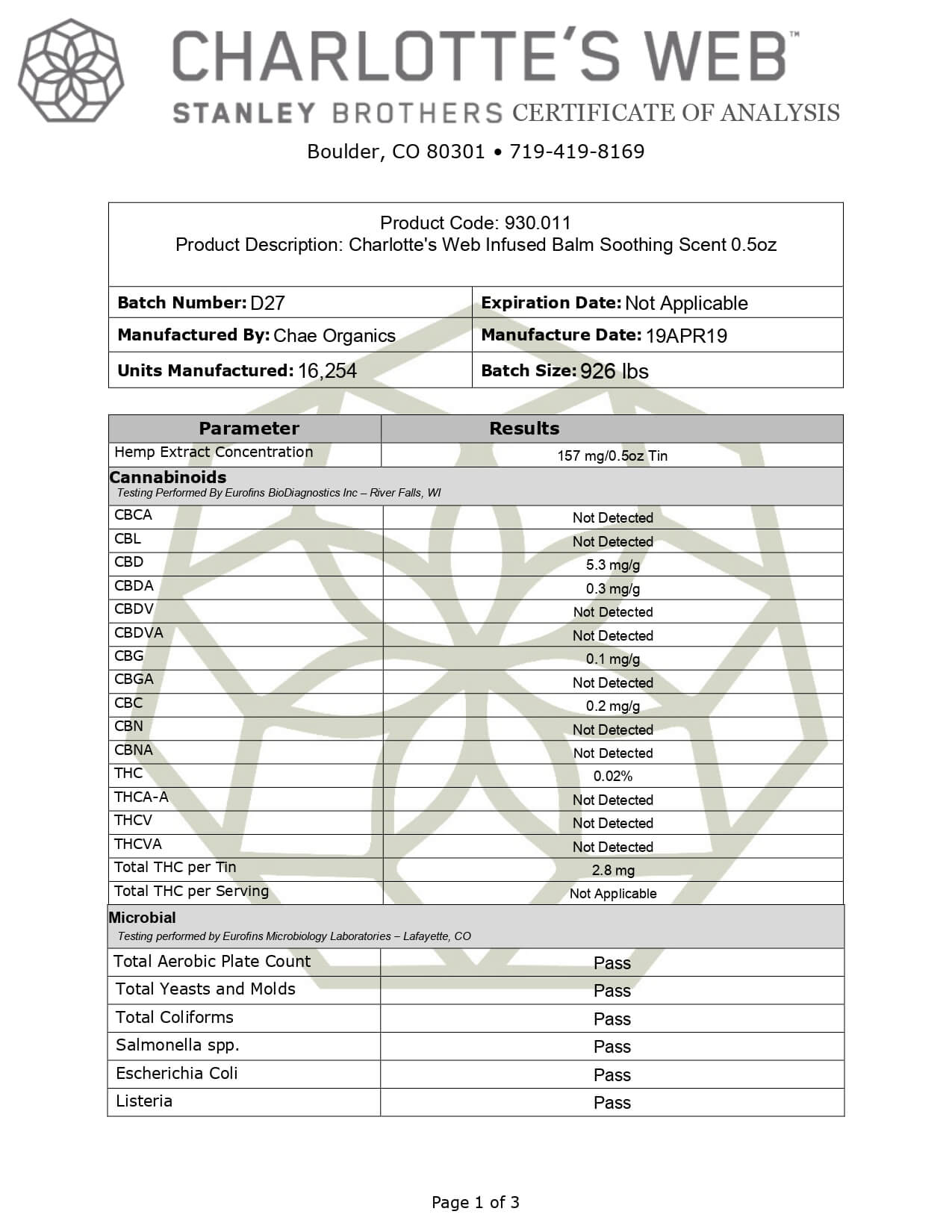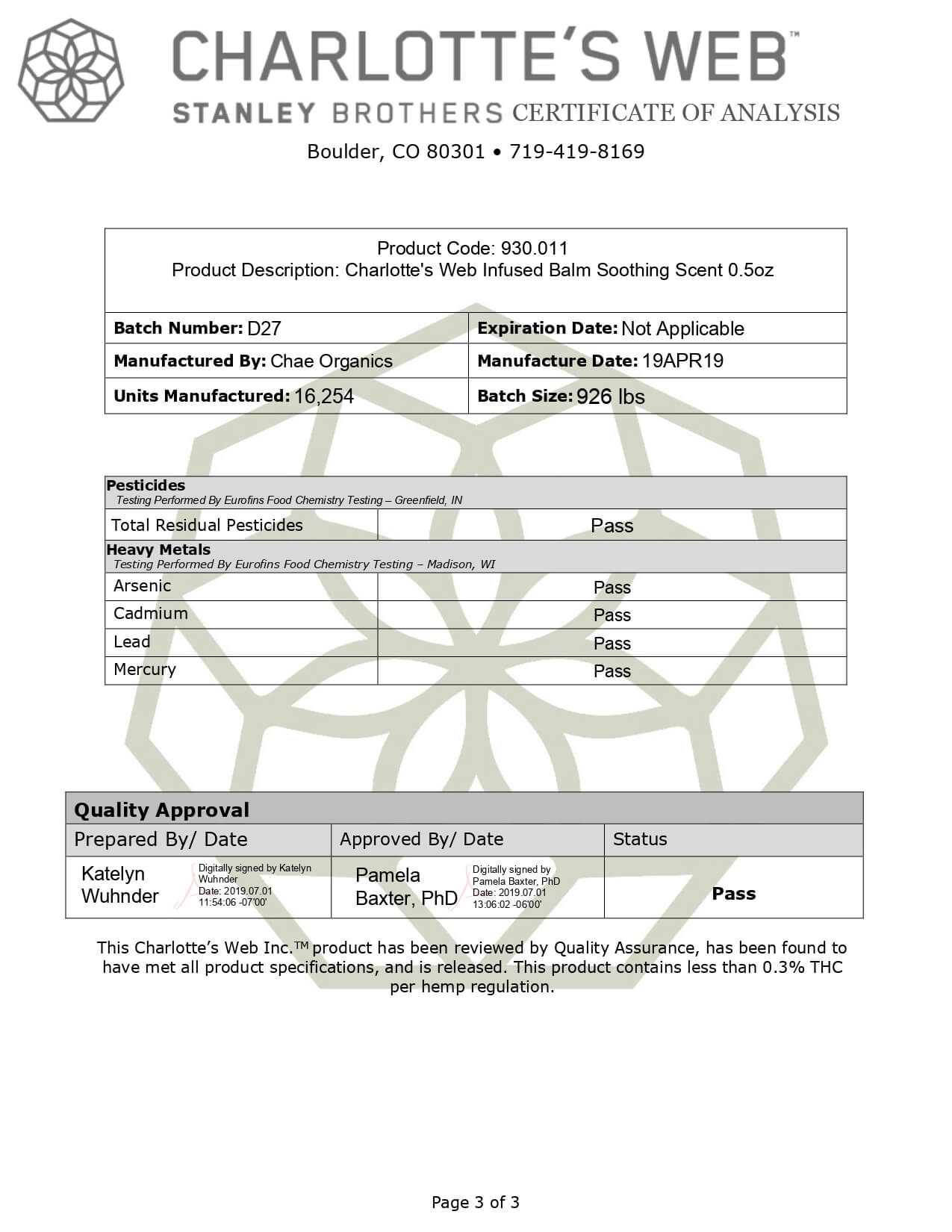 Charlottes Web Full Spectrum Hemp Infused Balm Lab Report
