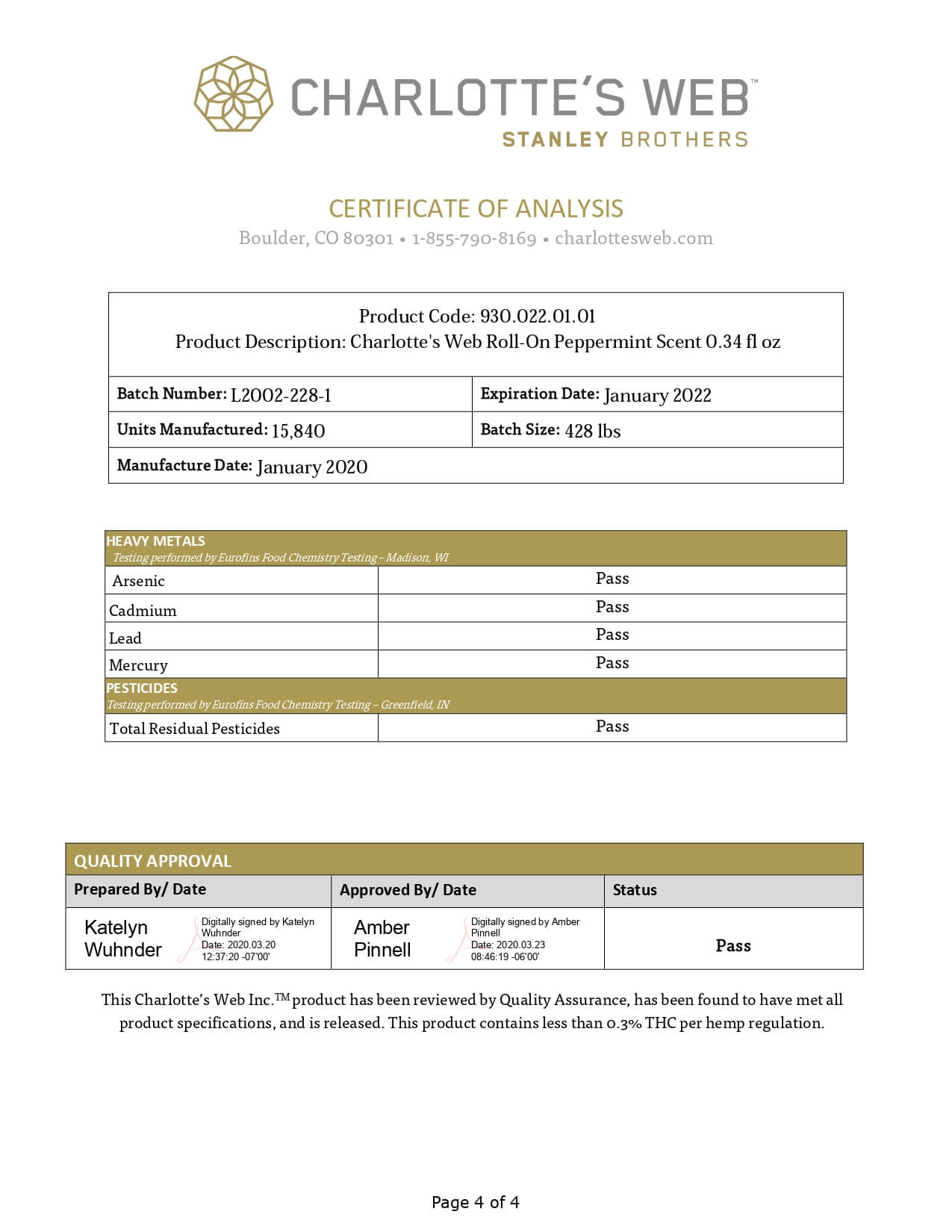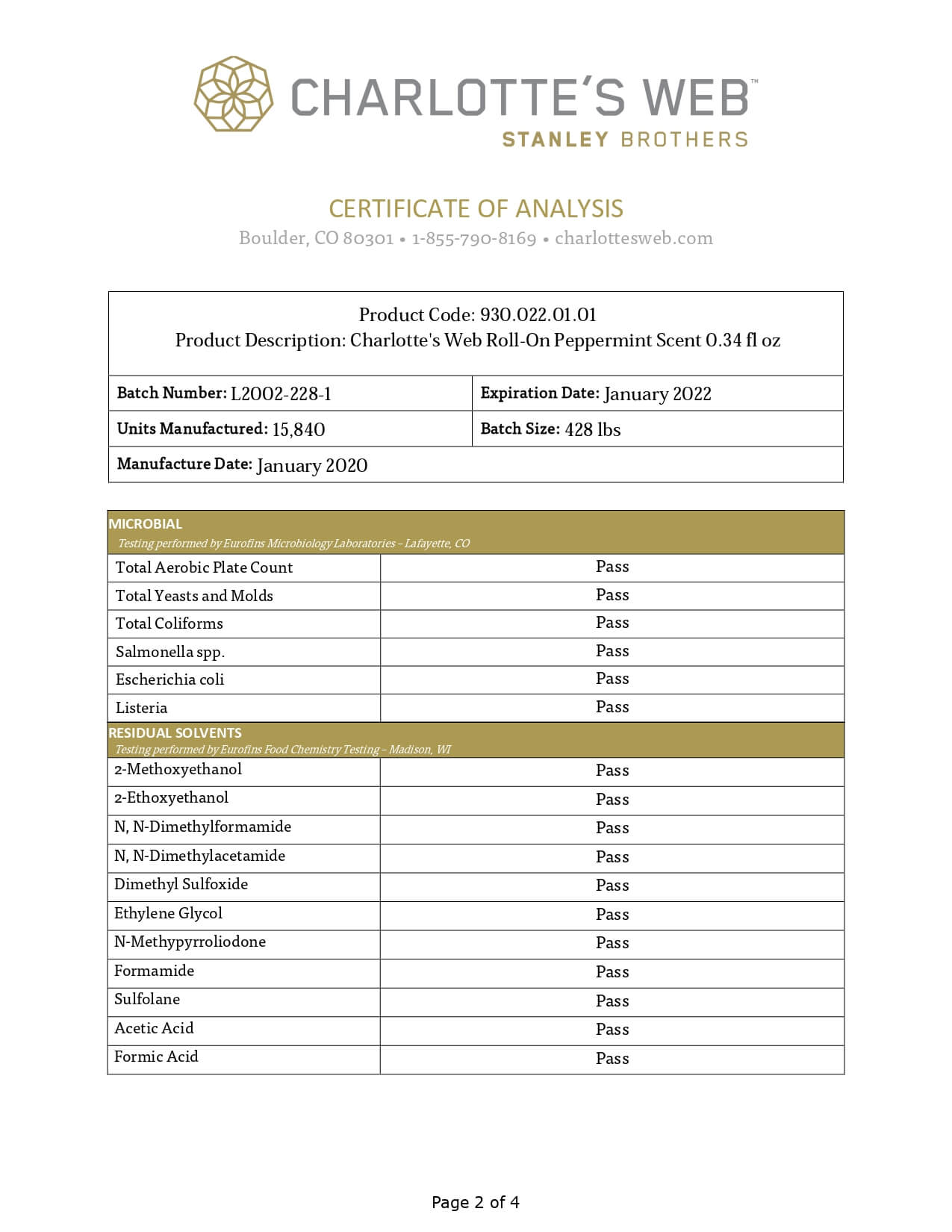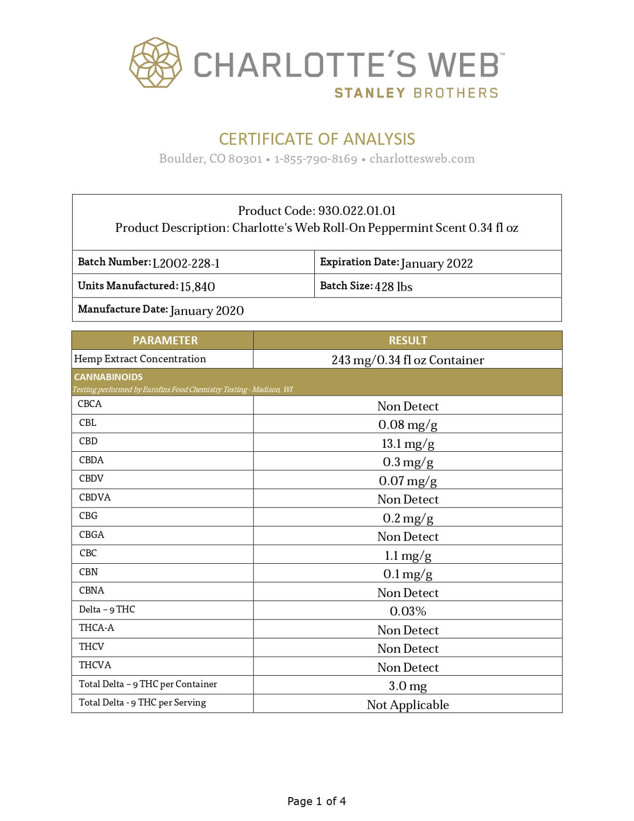 Charlottes Web Full Spectrum Peppermint Roll-On Lab Report