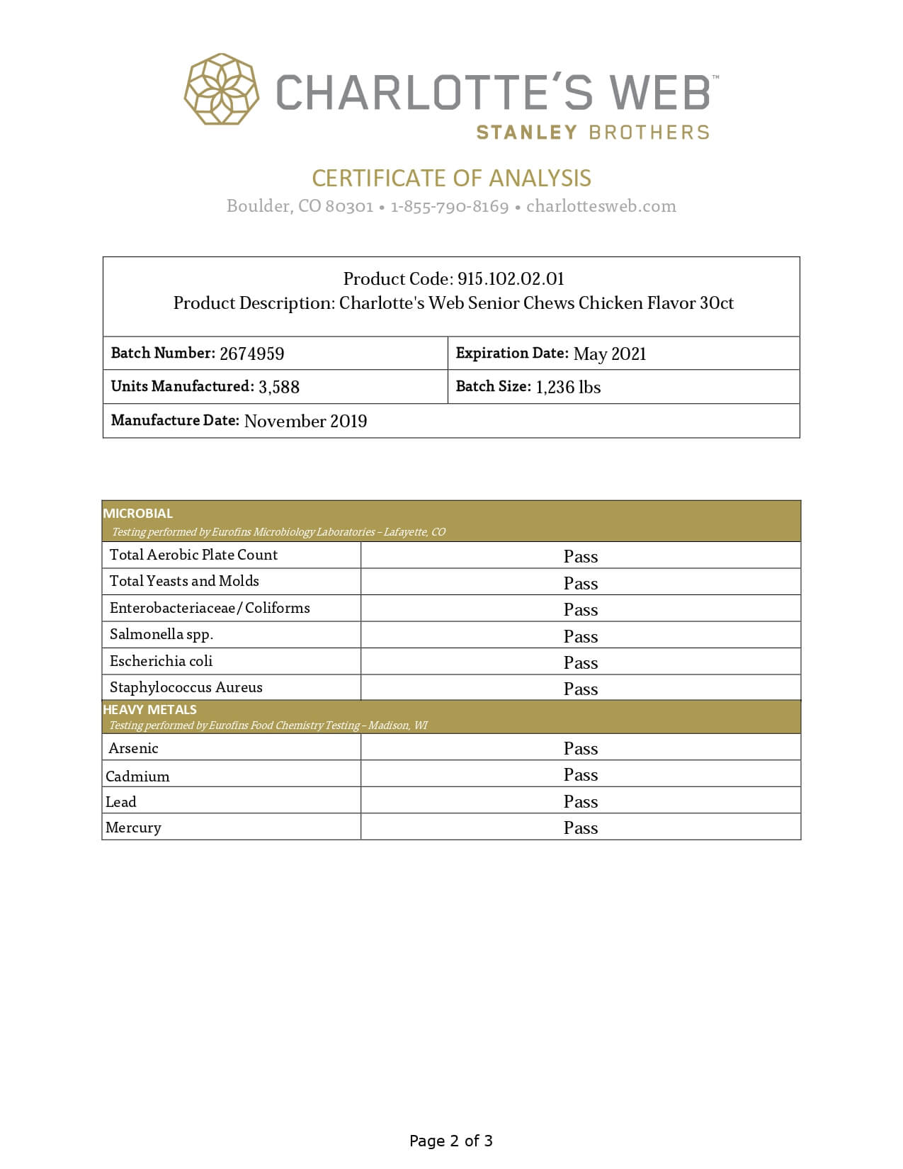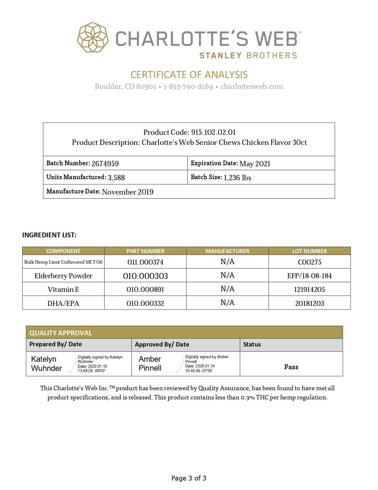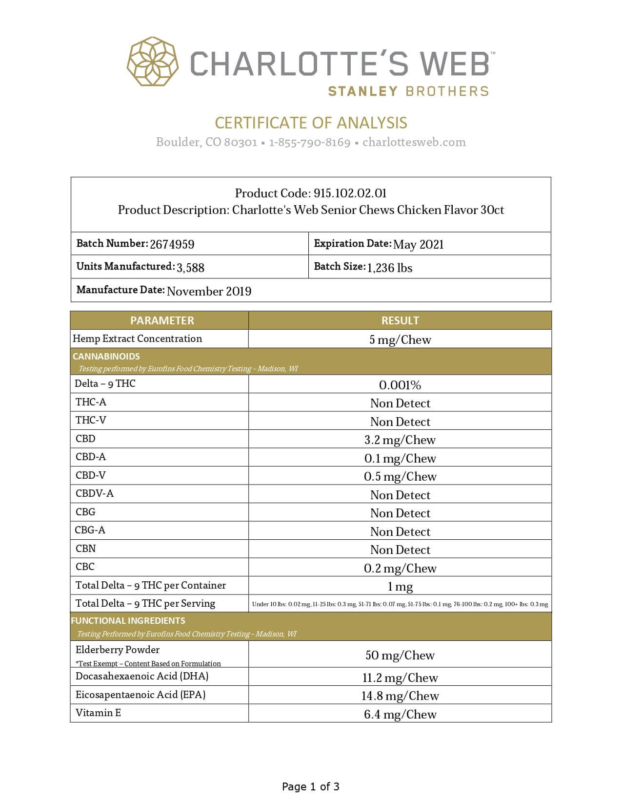 Charlottes Web Full Spectrum Senior Chews Lab Report