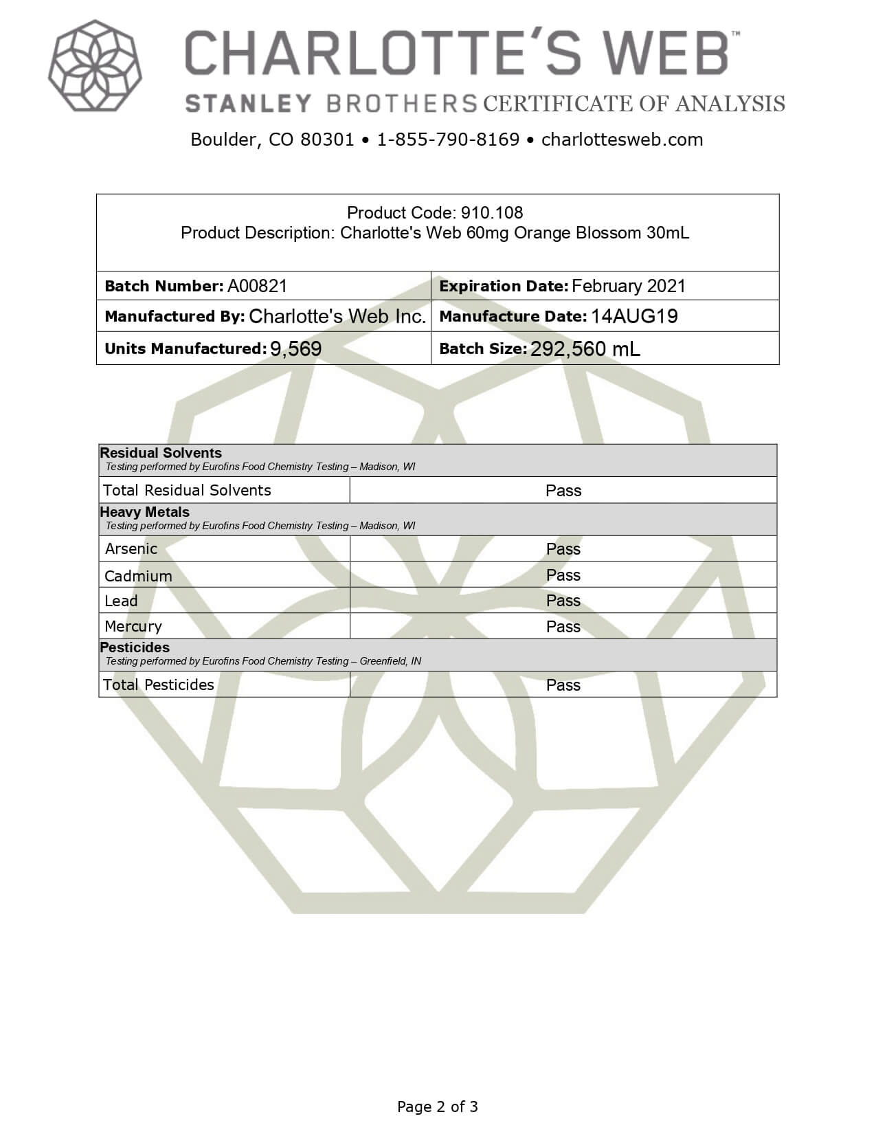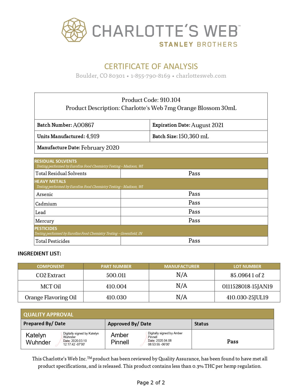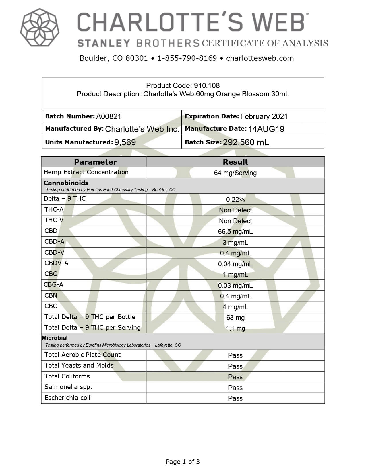 Charlottes Web Original Formula Mint Chocolate Lab Report