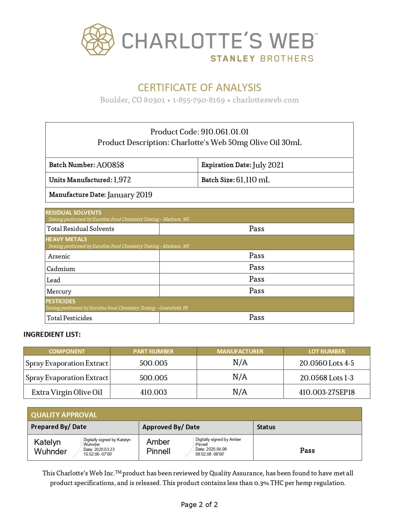 Charlottes Web Original Formula Olive Oil (Natural) Lab Report important details about vaping products.