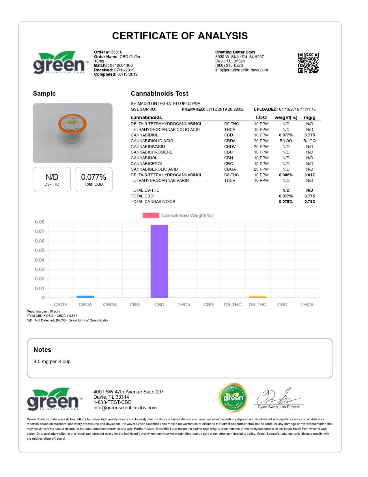 Creating Better Days CBD Coffee Pods Rise N Relief Lab Report important details about vaping products.