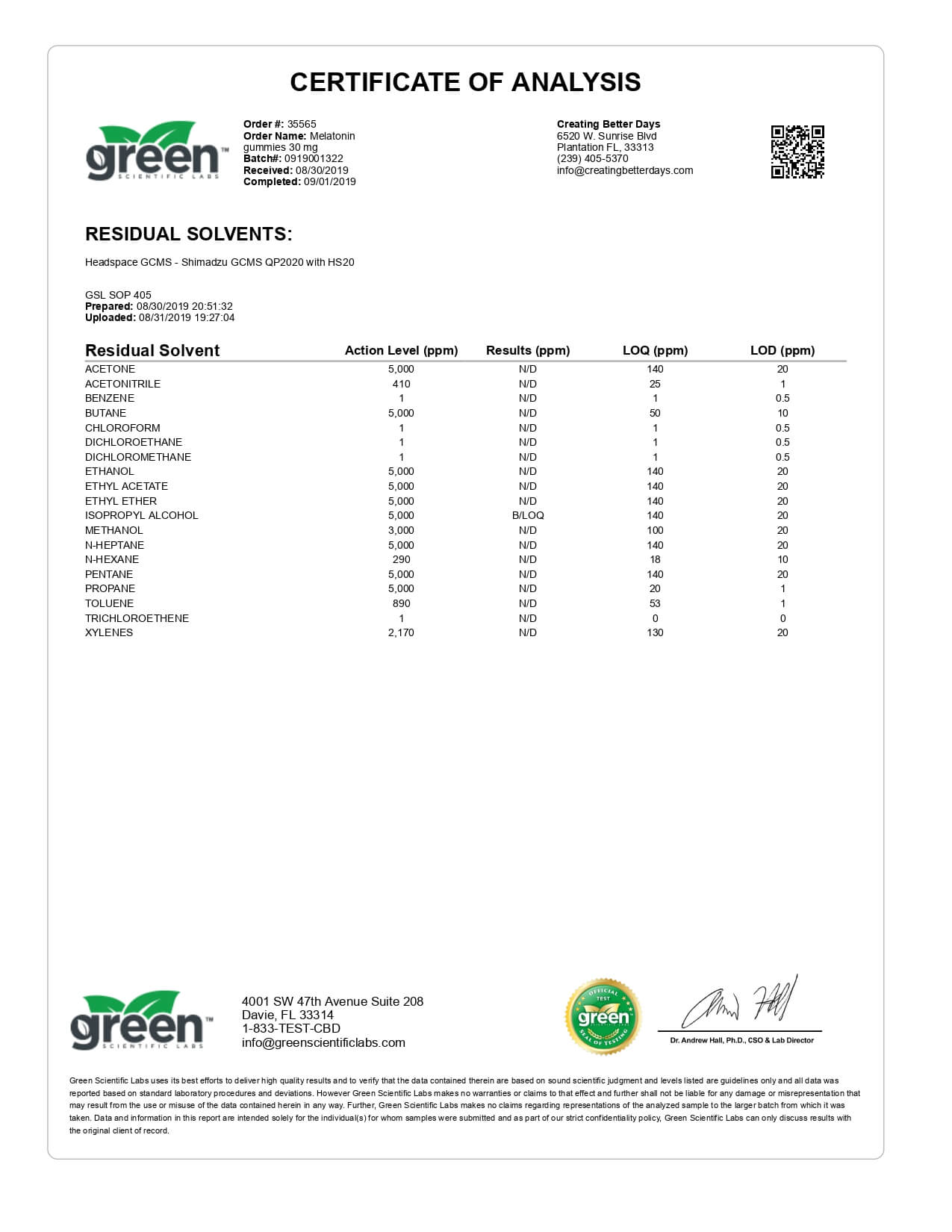Creating Better Days CBD Edible Go! Nano-VitaGummies + Melatonin Lab Report