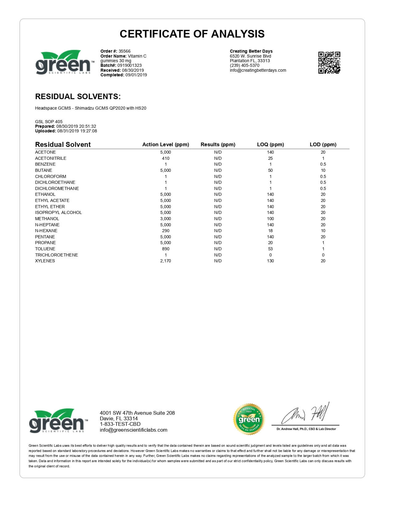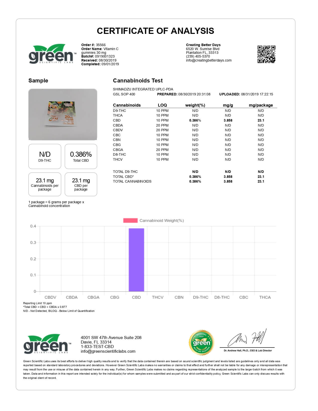 Creating Better Days CBD Edible Go! Nano-VitaGummies + Vitamin C Lab Report important details about vaping products.