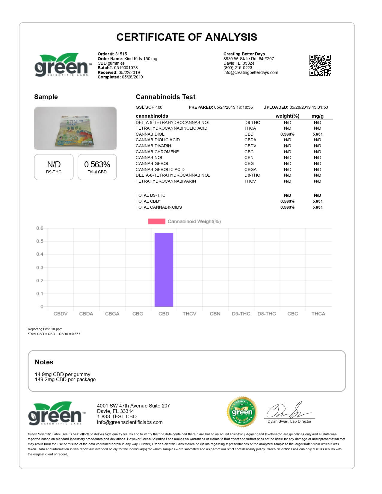Creating Better Days CBD Edible Kind Kids Gummies Lab Report important details about vaping products.