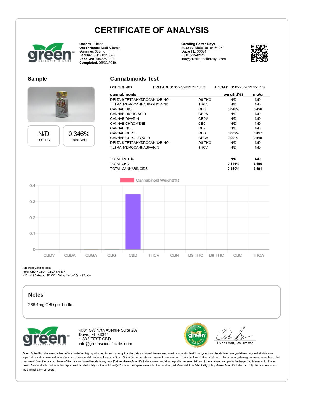 Creating Better Days CBD Edible VitaGummies Multi-Vitamin Lab Report important details about vaping products.