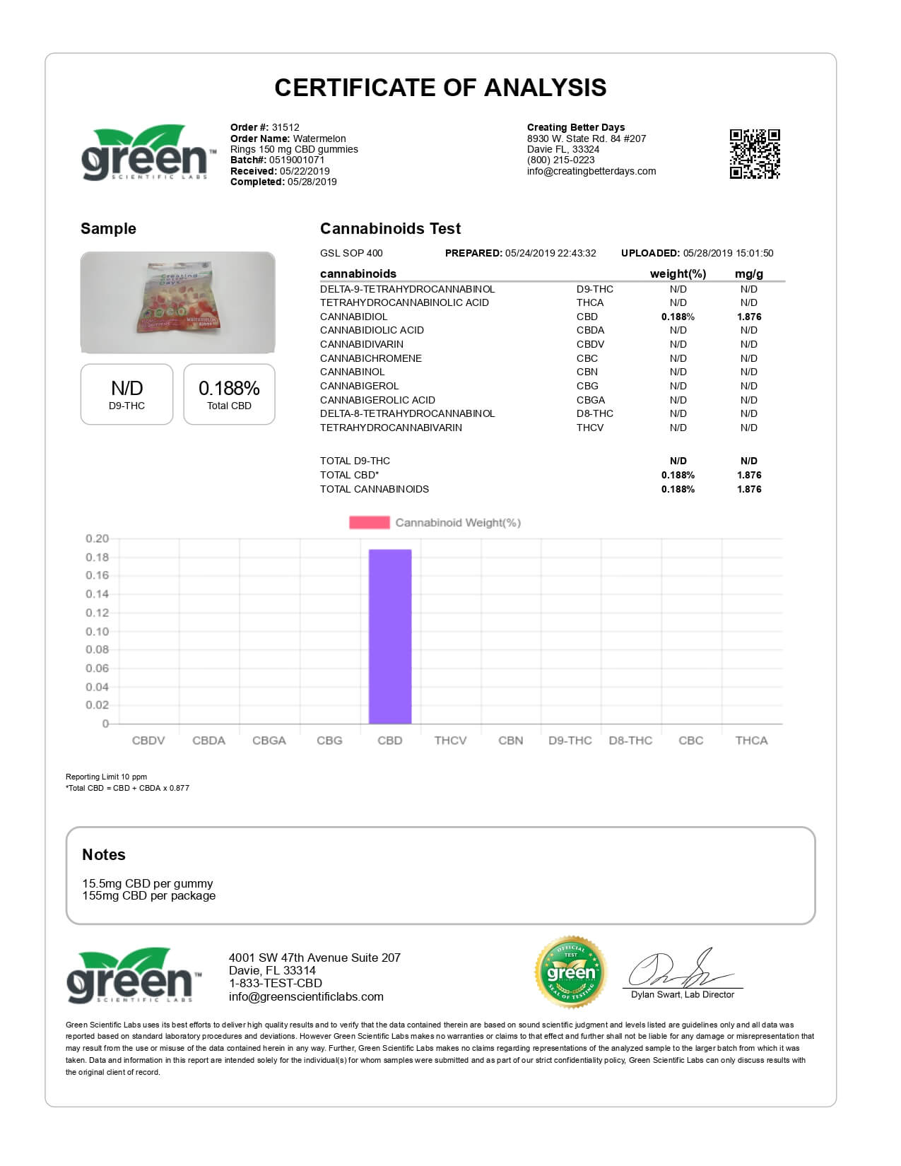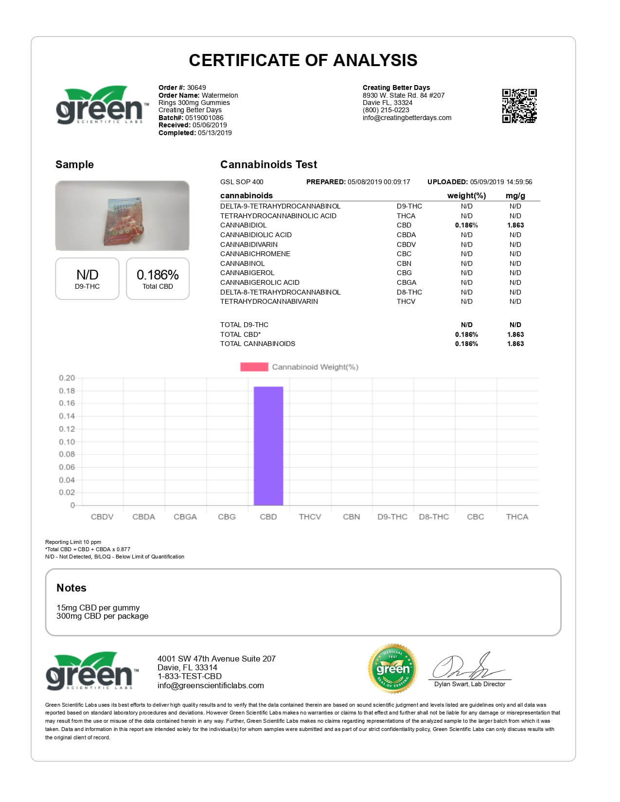 Creating Better Days CBD Edible Watermelon Rings Gummies Lab Report important details about vaping products.