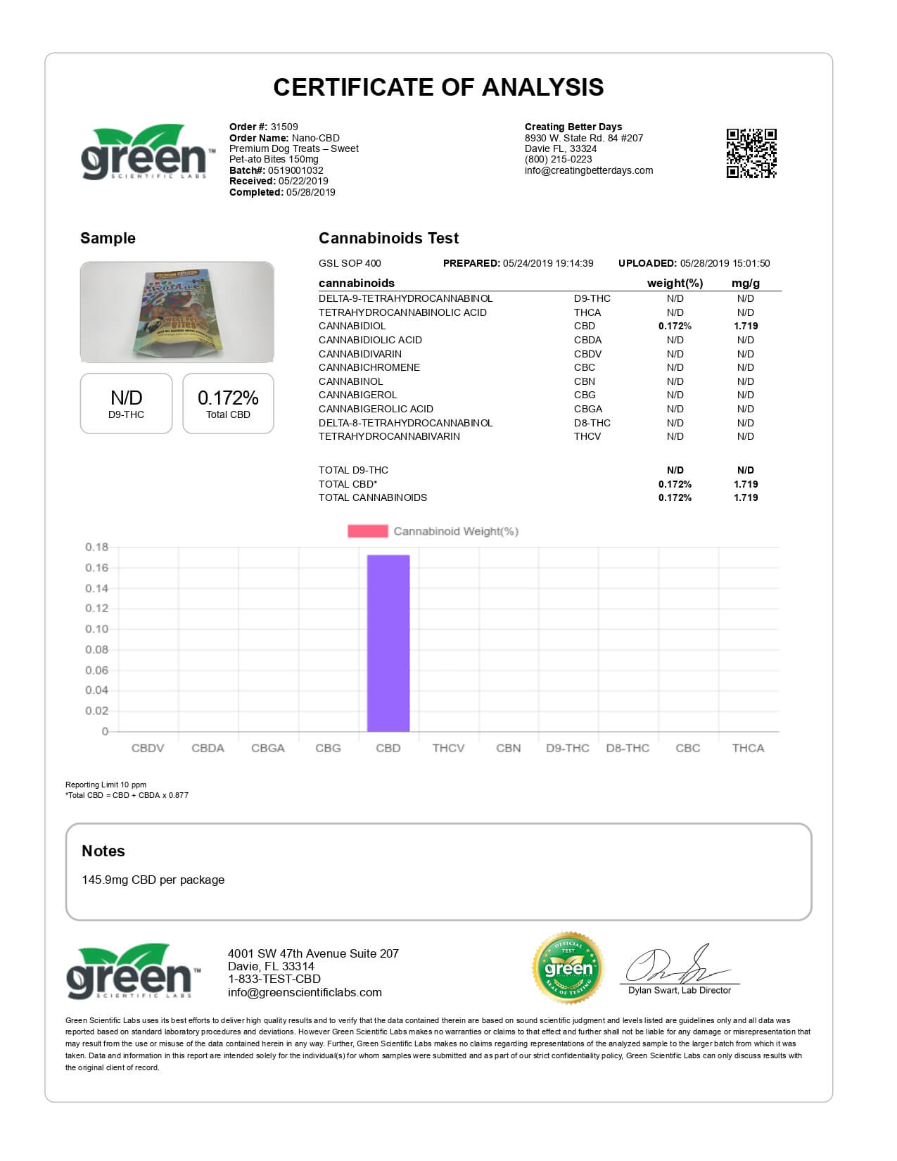 Creating Better Days CBD Pet Treat Wildlife Premium Sweet Pet-ato Bites Lab Report important details about vaping products.