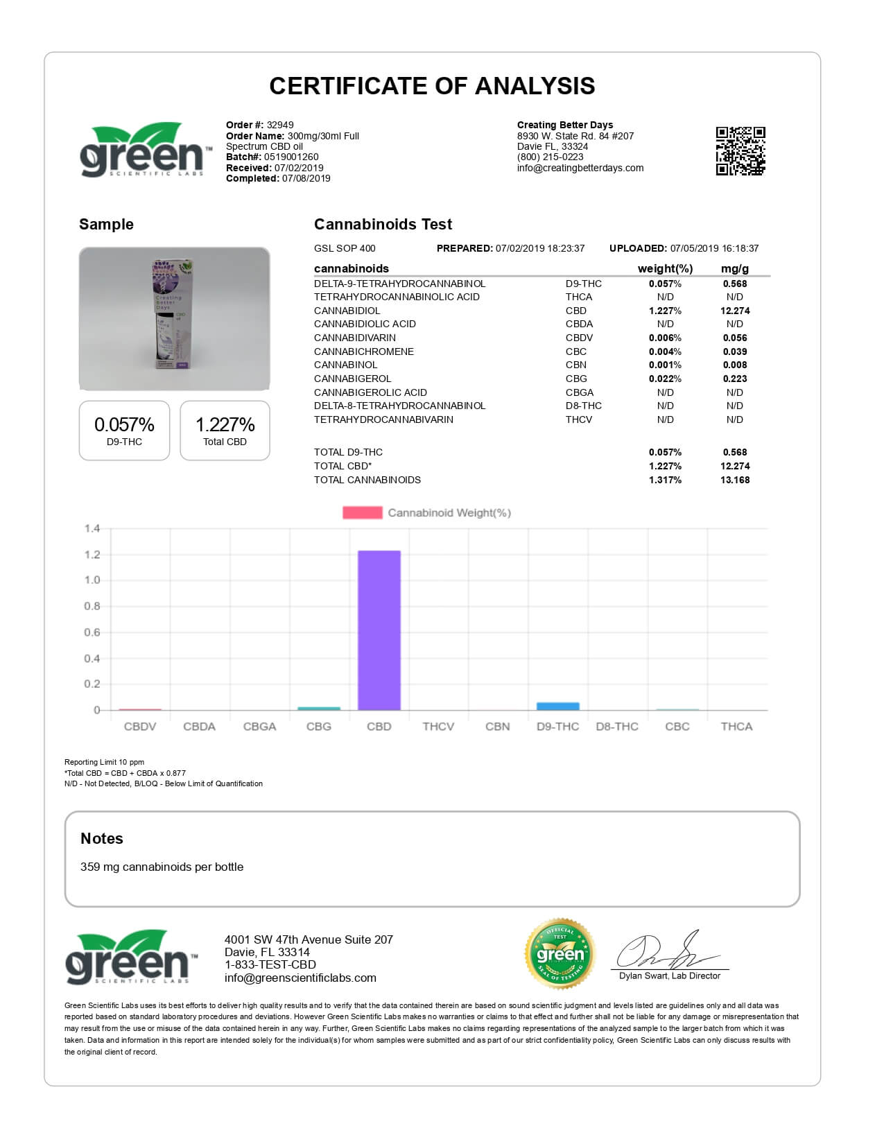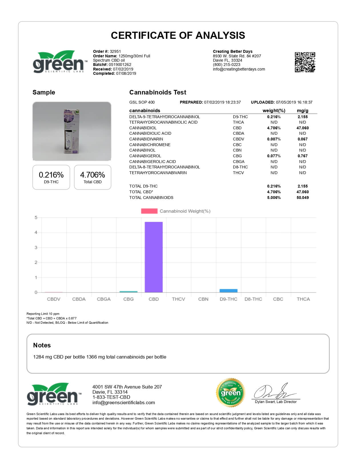 Creating Better Days CBD Tincture Full Spectrum Oil Lab Report important details about vaping products.