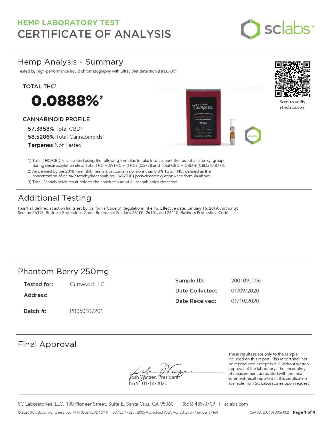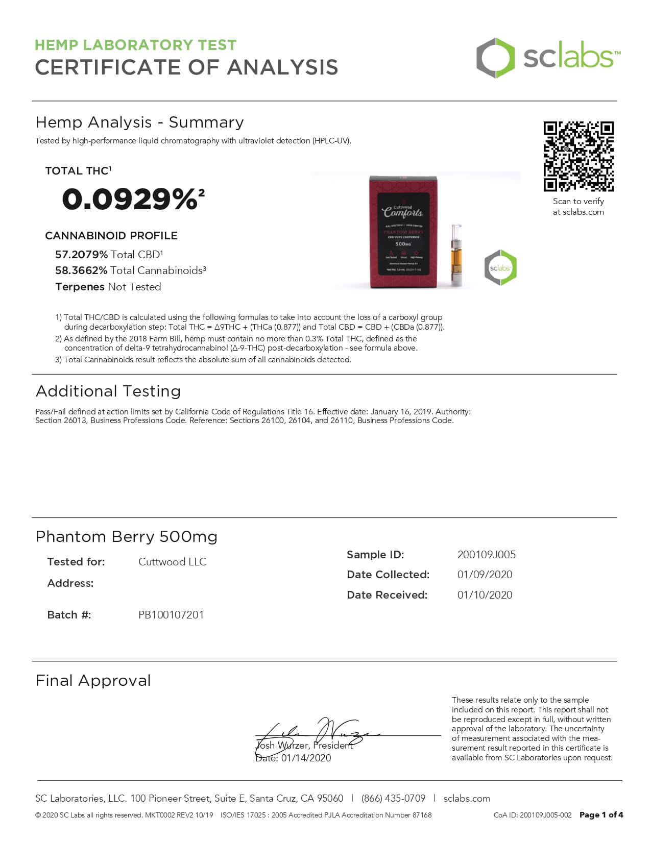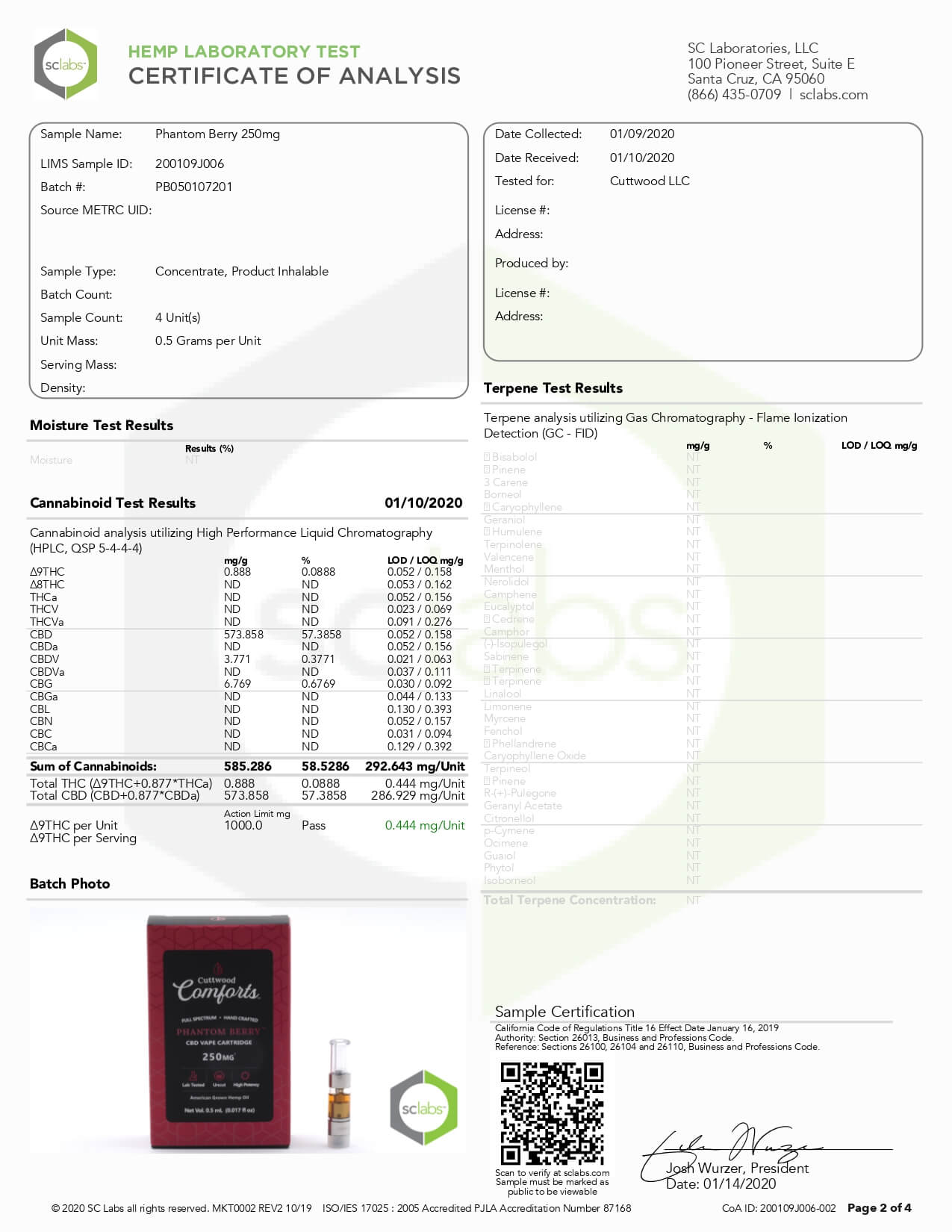 Cuttwood Comforts CBD Vape Cartridge Full Spectrum Phantom Berry Lab Report important details about vaping products.
