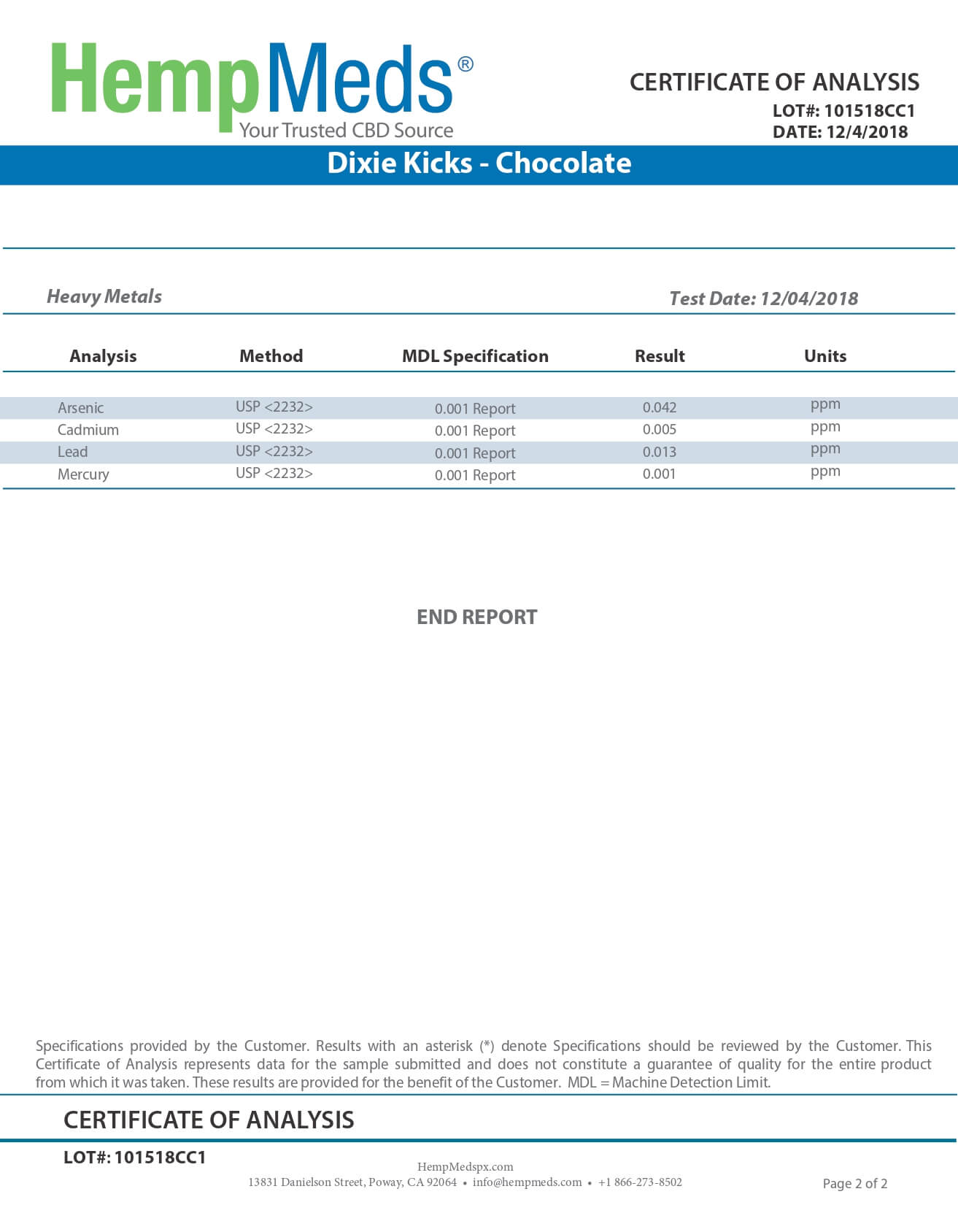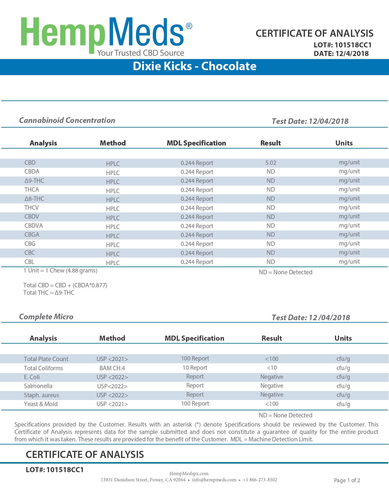 Dixie Botanicals CBD Edible Kicks Chocolate Chews Lab Report important details about vaping products.