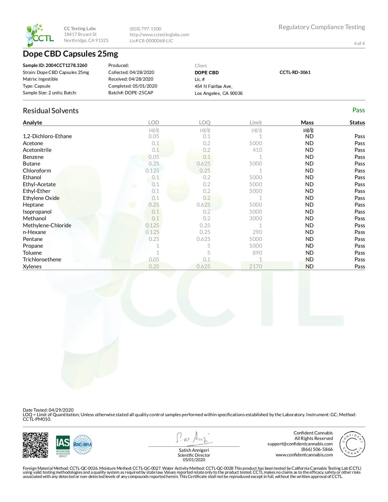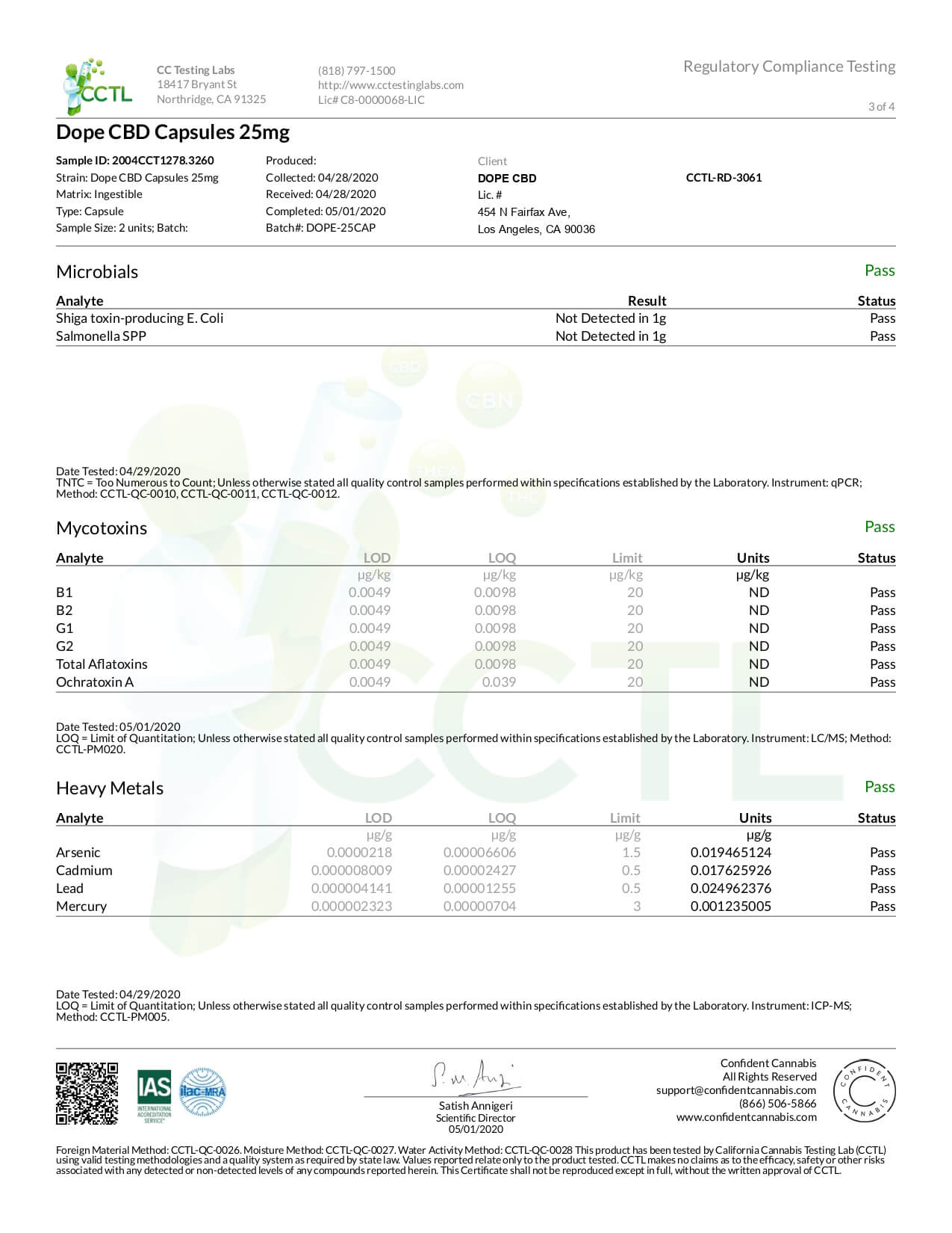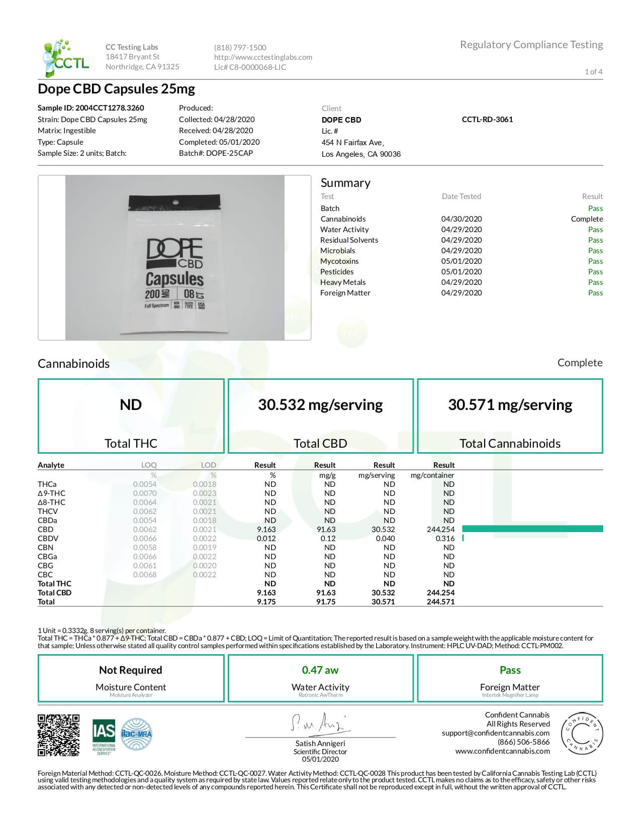 Dope CBD Capsules Full Spectrum Caps Lab Report