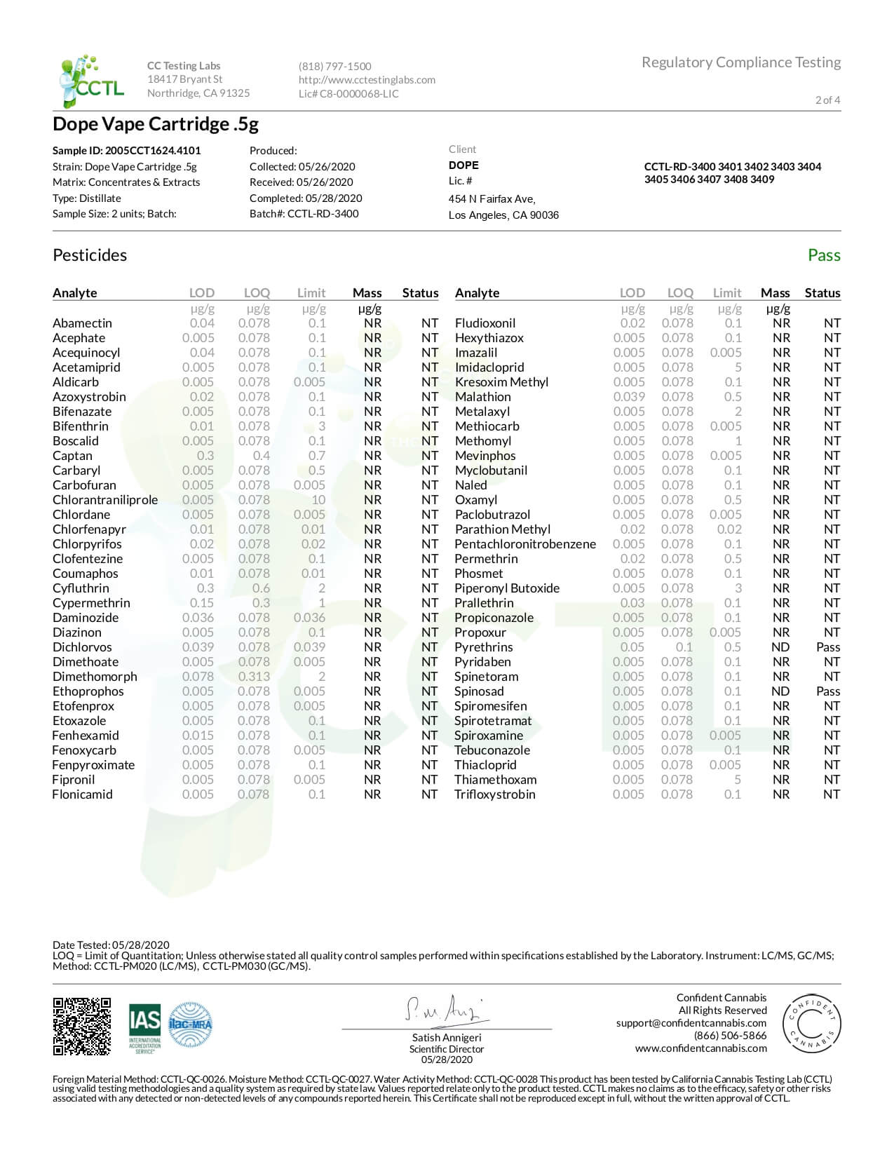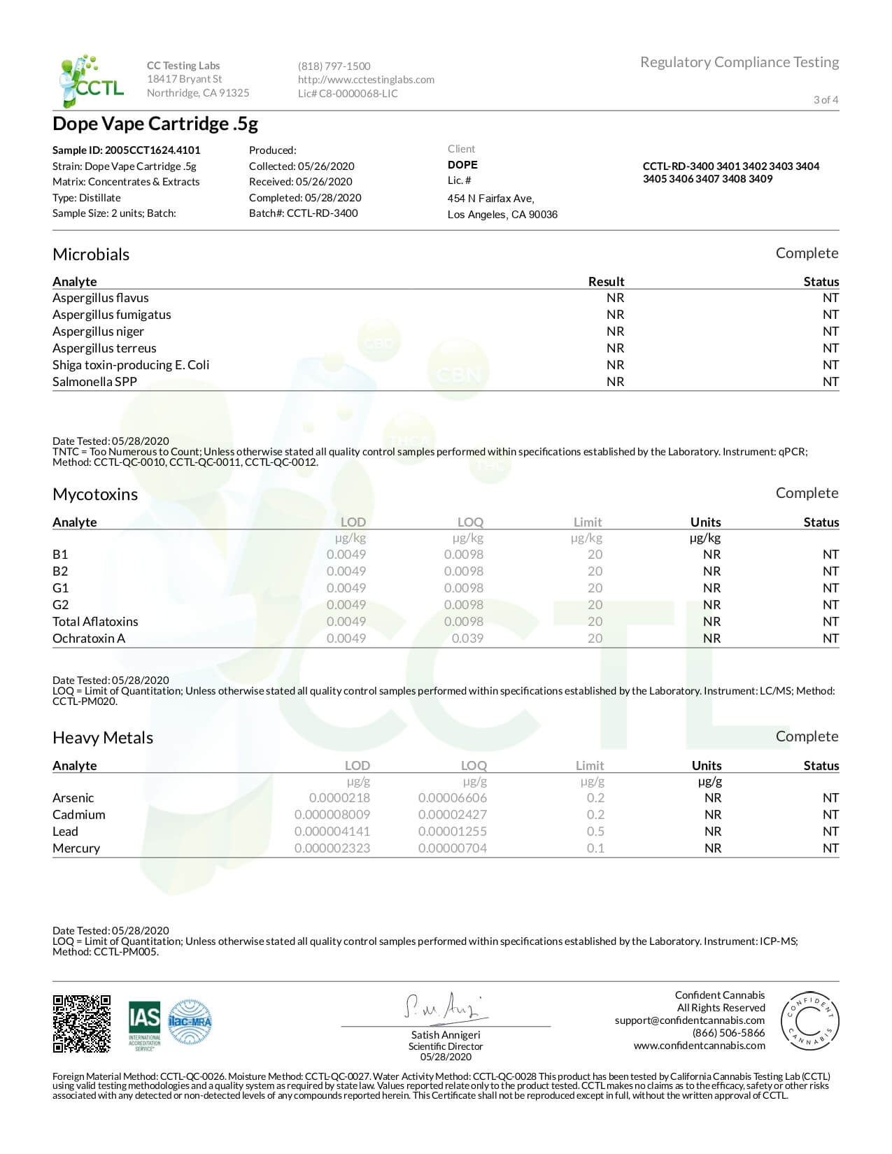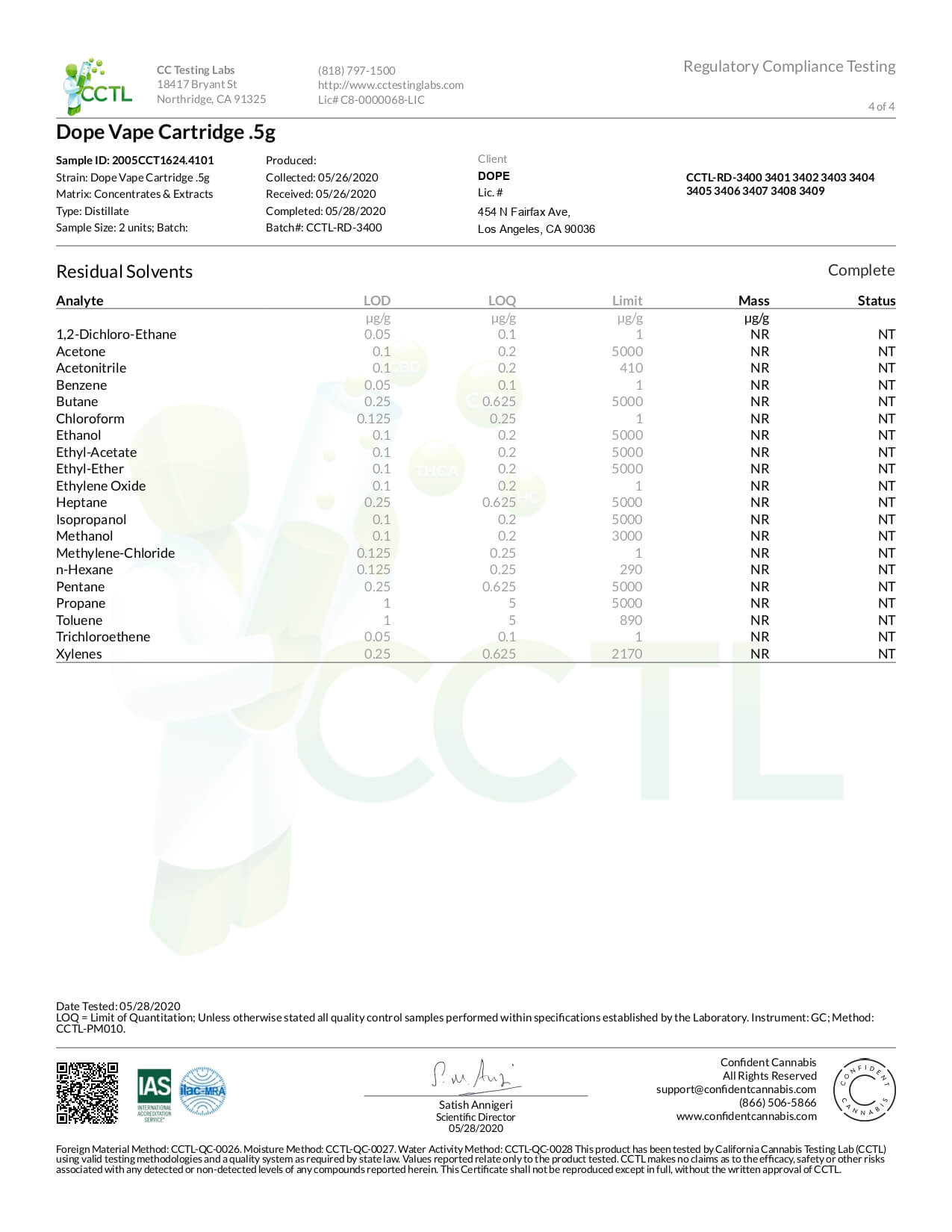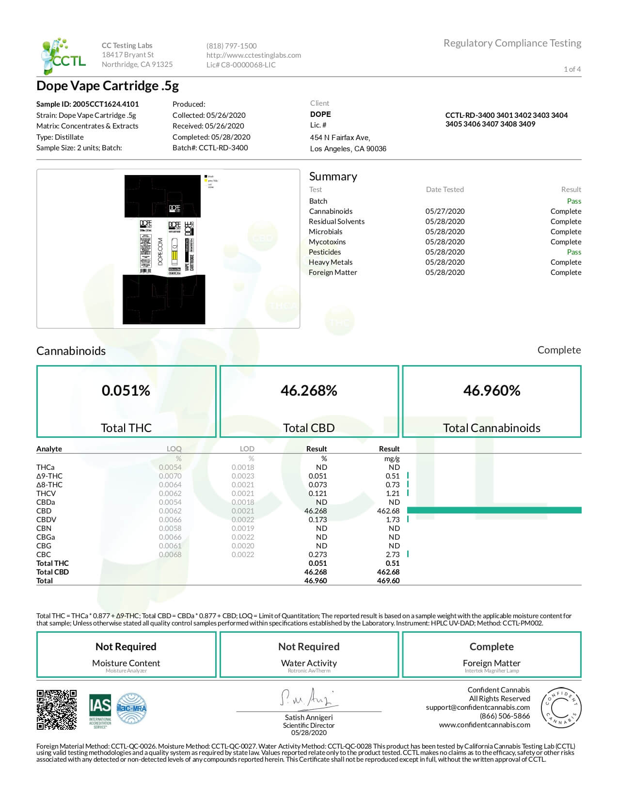 Dope CBD Cartridge Unflavored Raw Lab Report important details about vaping products.