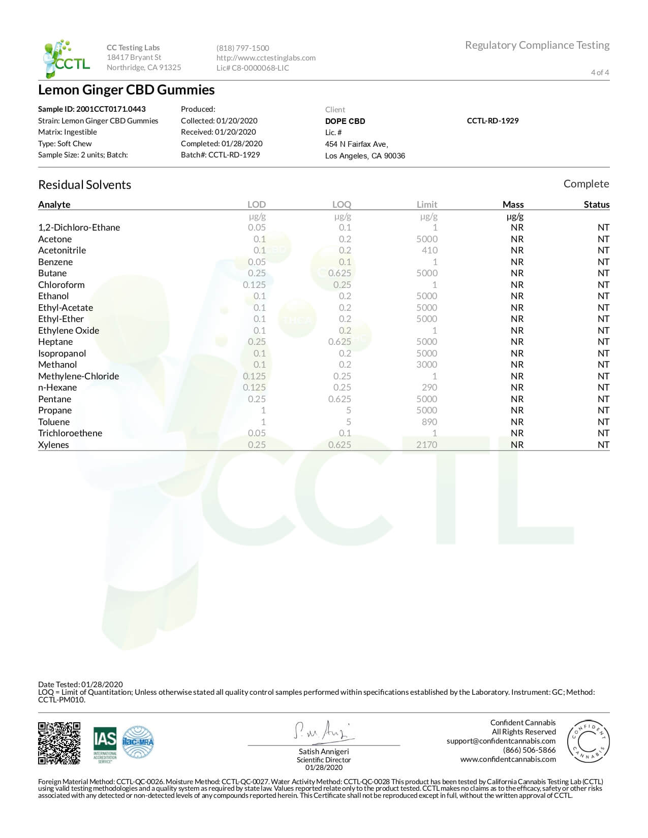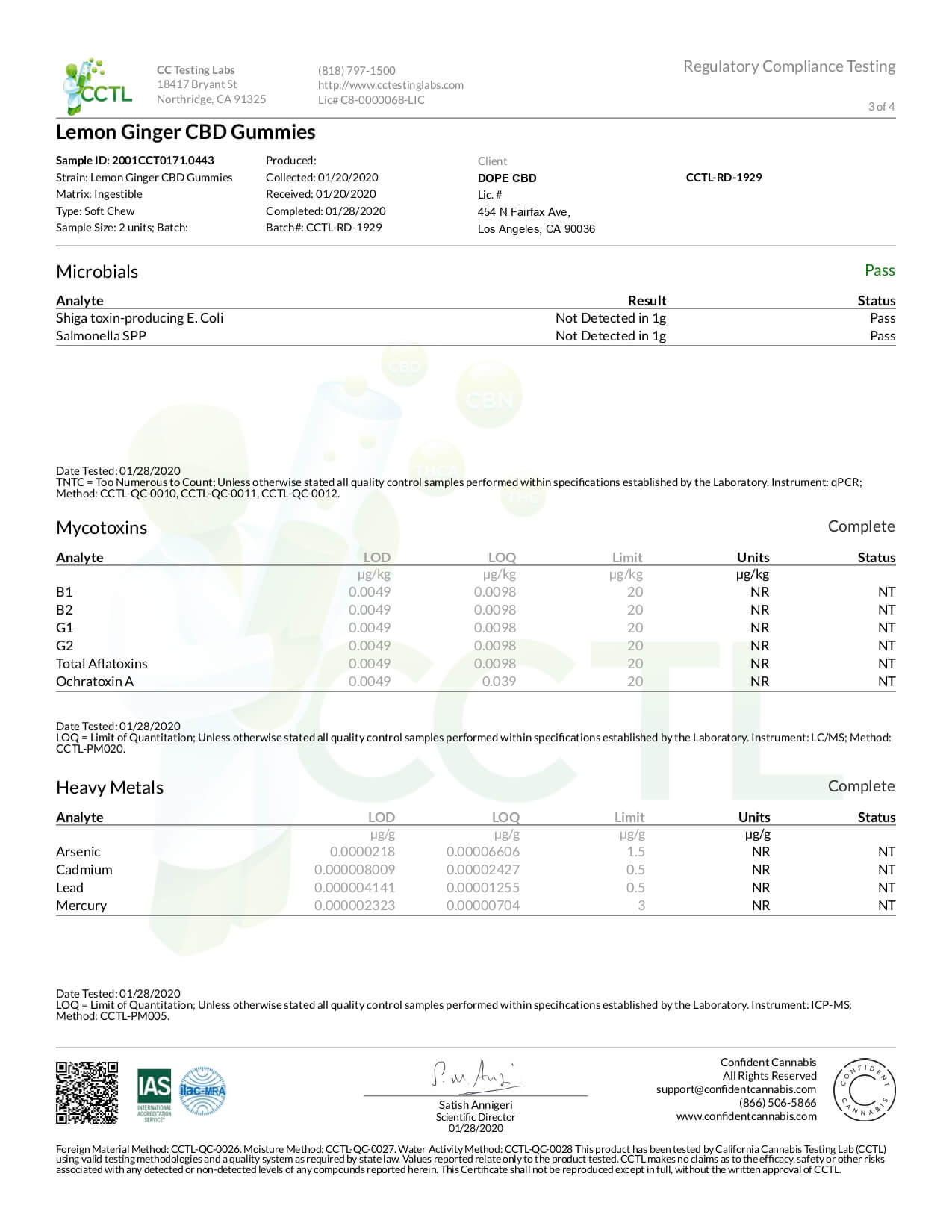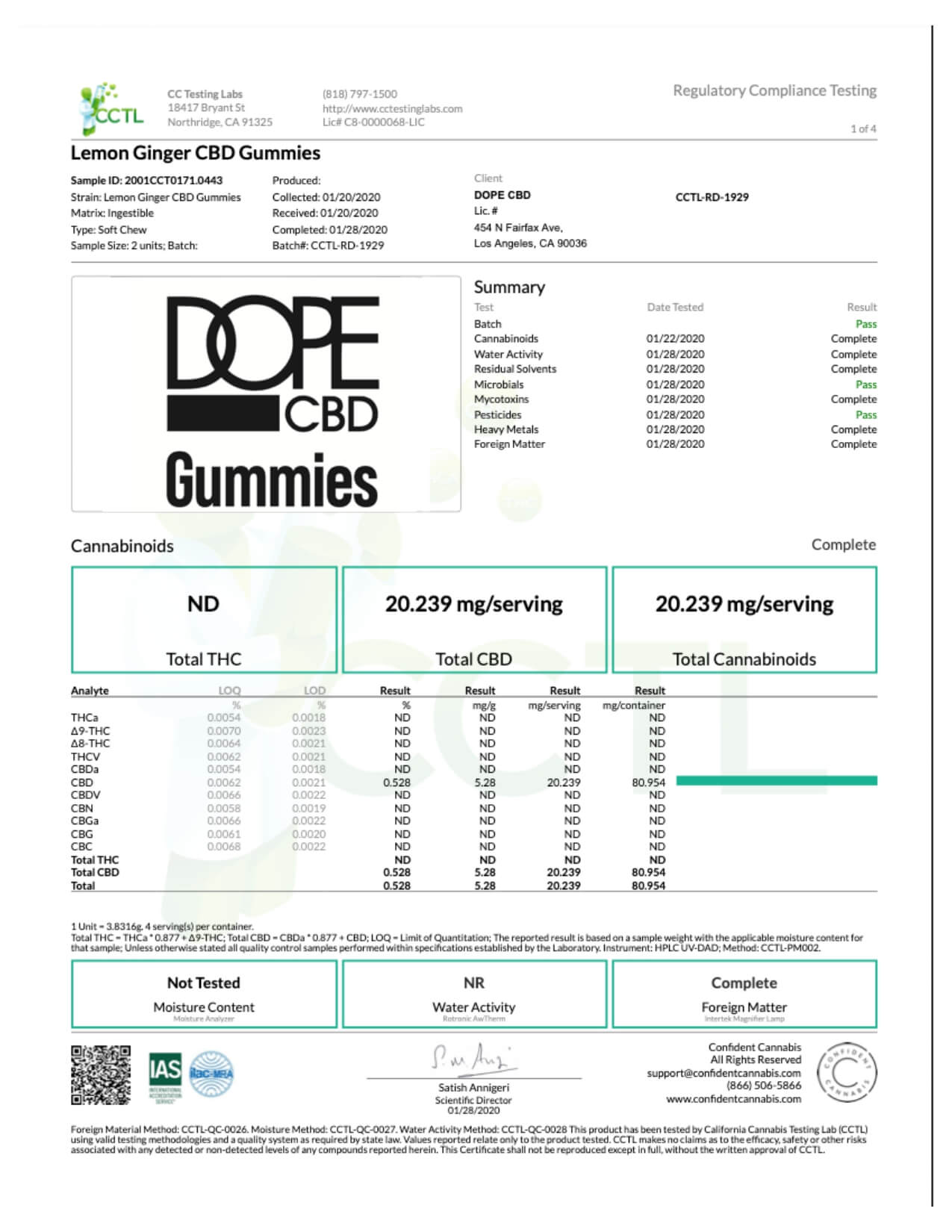 Dope CBD Edible Extra Strength Lemon Gummies Lab Report