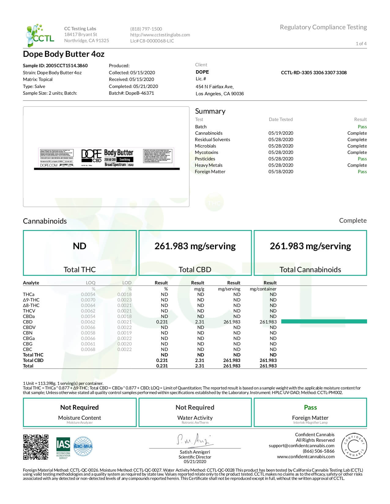 Dope CBD Topical Broad Spectrum Body Butter Lab Report
