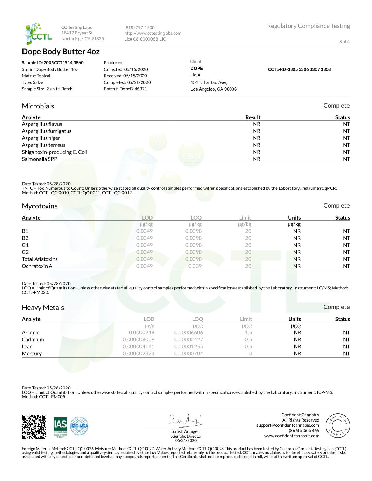 Dope CBD Topical Broad Spectrum Body Butter Lab Report important details about vaping products.