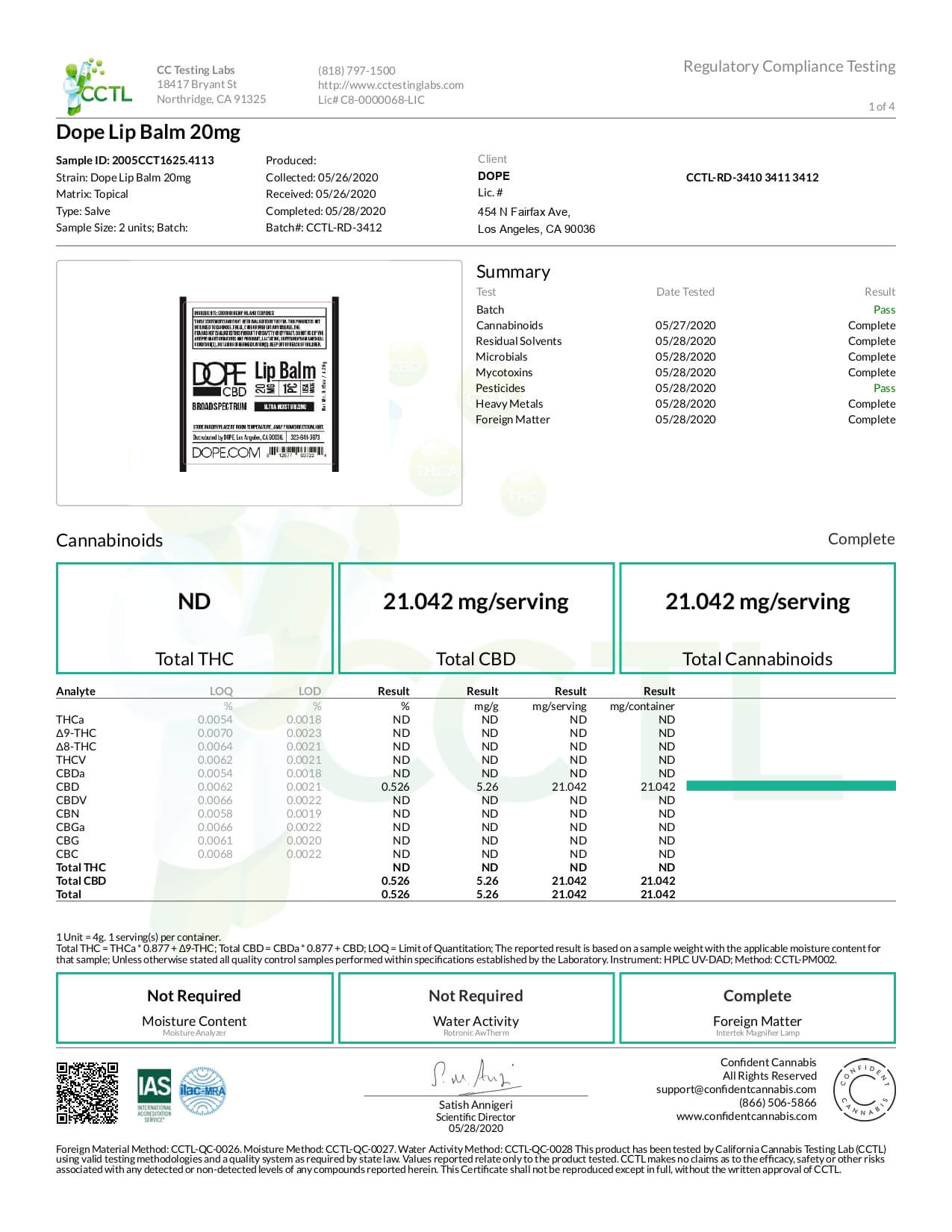 Dope CBD Topical Broad Spectrum Moisturizing Lip Balm Lab Report important details about vaping products.