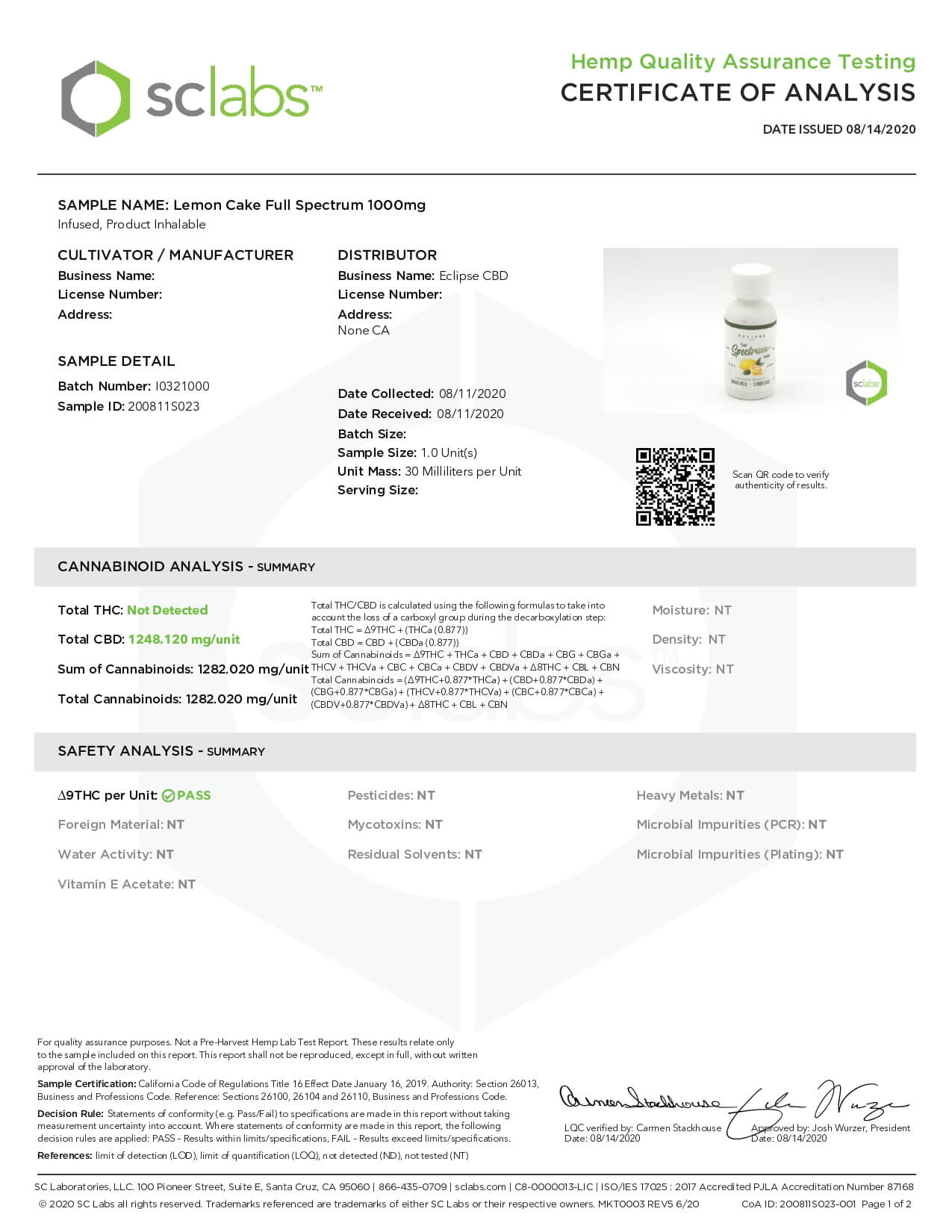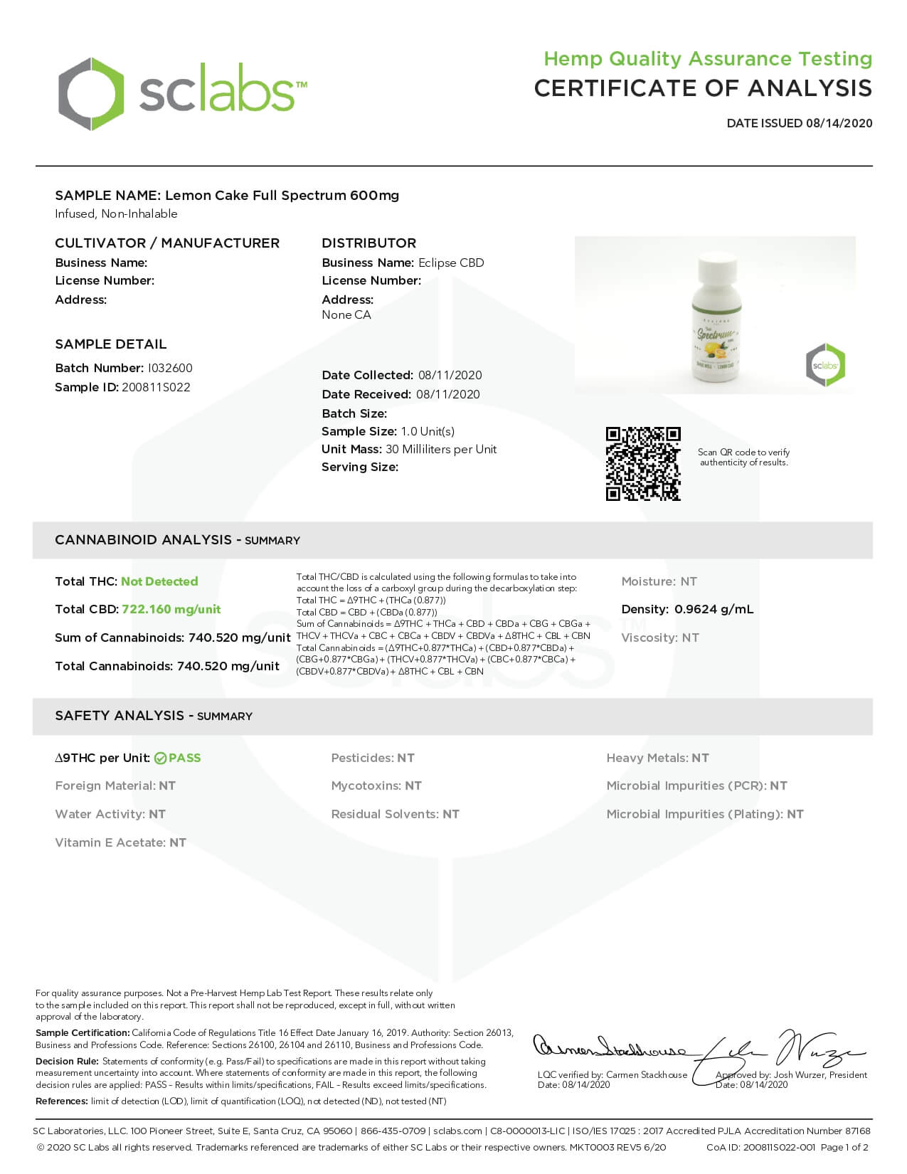 Eclipse CBD MCT Tincture Lemon Cake Lab Report