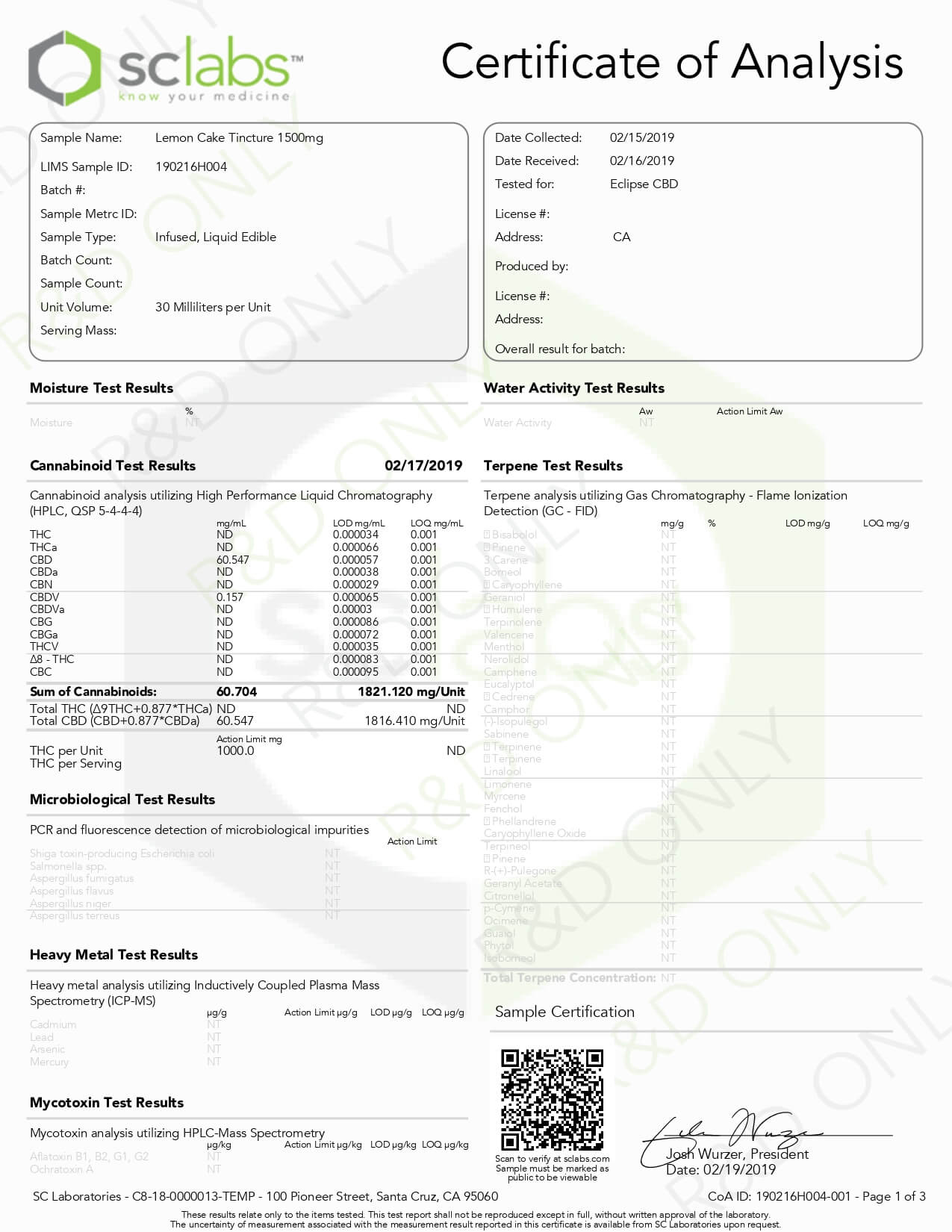 Eclipse CBD MCT Tincture Lemon Cake 1500mg Lab Report